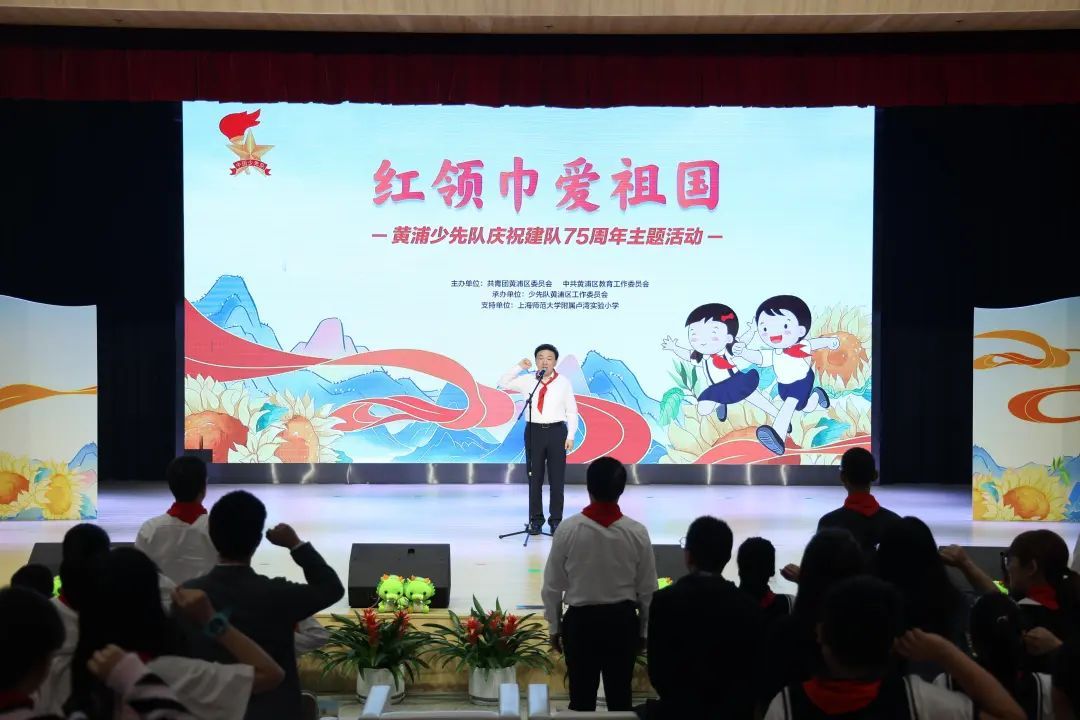 赵国强带领全体少先队员呼号。
