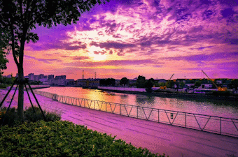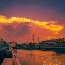 踏上蕰藻浜的岸边,首先映入眼帘的是那抹渐渐沉入水面的夕阳,它不像正午时分的炽烈,而是多了几分柔和与温婉。金色的光芒洒在水面上,波光粼粼,仿佛无数颗星辰落入凡间,每一道光芒都承载着对这片土地深深的眷恋。那一刻,时间仿佛凝固,让人忘却尘嚣,只想沉浸在这份宁静与美好之中。