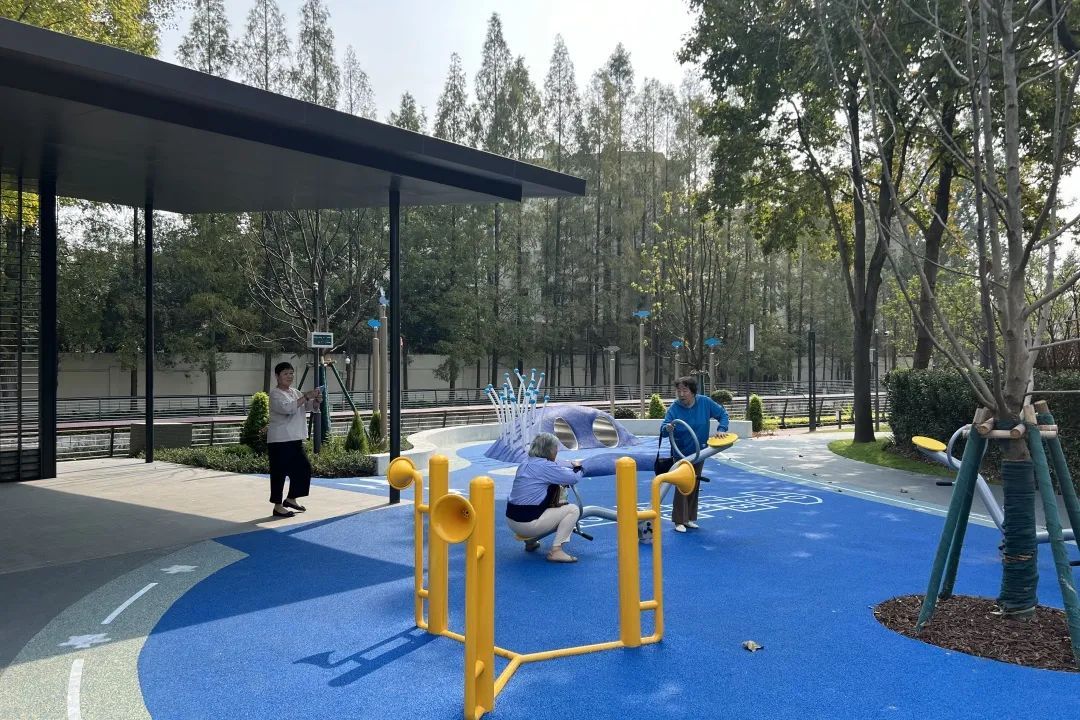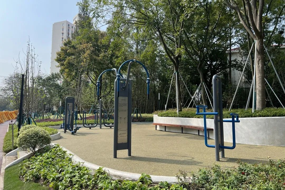 原场地内缺乏健身设施,此次改造临河设置4组健身设施,并沿线增设座椅,方便游人在此小憩。