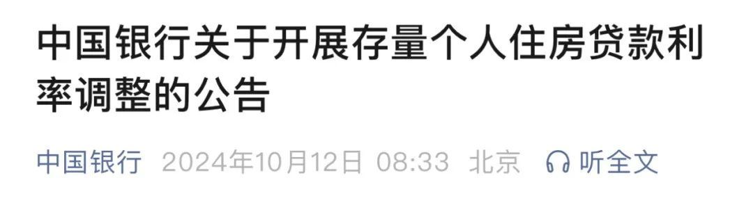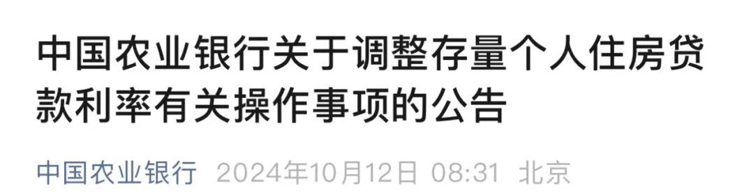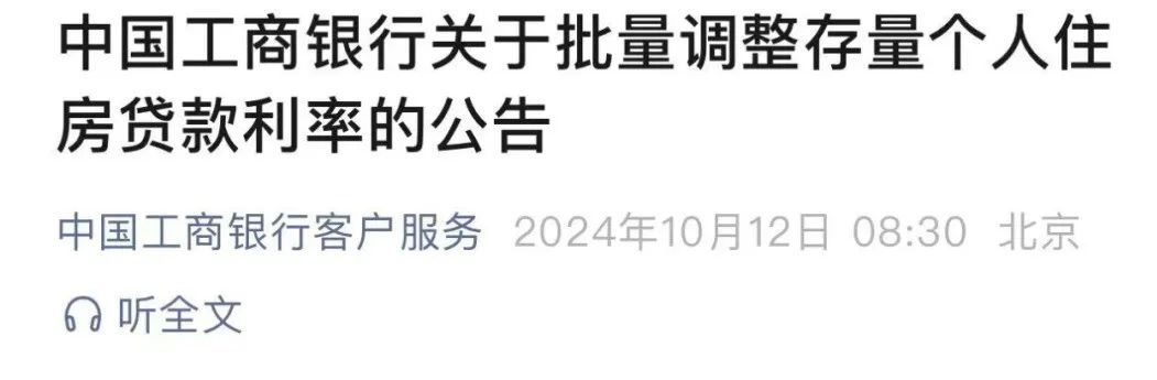 近日,工商银行、农业银行、中国银行、建设银行等多家银行陆续发布公告,10月25日起,将对存量个人房贷利率进行批量调整。除贷款在北京、上海、深圳等地区且为二套房贷款的情形外,其他符合条件的房贷利率都将调整为贷款市场报价利率LPR-30BP。