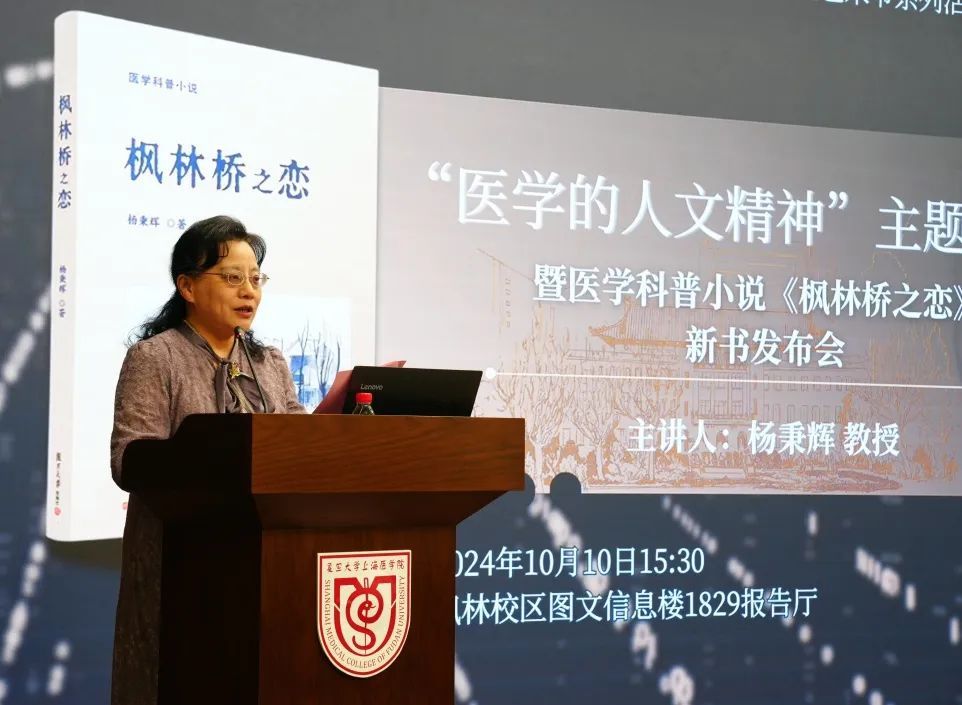 主题报告结束后,杨秉辉向大家介绍了他的新书——医学科普小说《枫林桥之恋》。该书于2023年12月由复旦大学出版社正式出版,通过描述幸福邨街道社区卫生服务中心徐家霆、袁秀芬等医护人员的工作、学习、感情和生活,印证了颜福庆老校长在枫林桥地区创立上海医学院新址时树立医学教育“为人群服务”的深刻意义,讴歌了医务人员的奉献精神,展现了全科医学“以人为本”的核心理念。