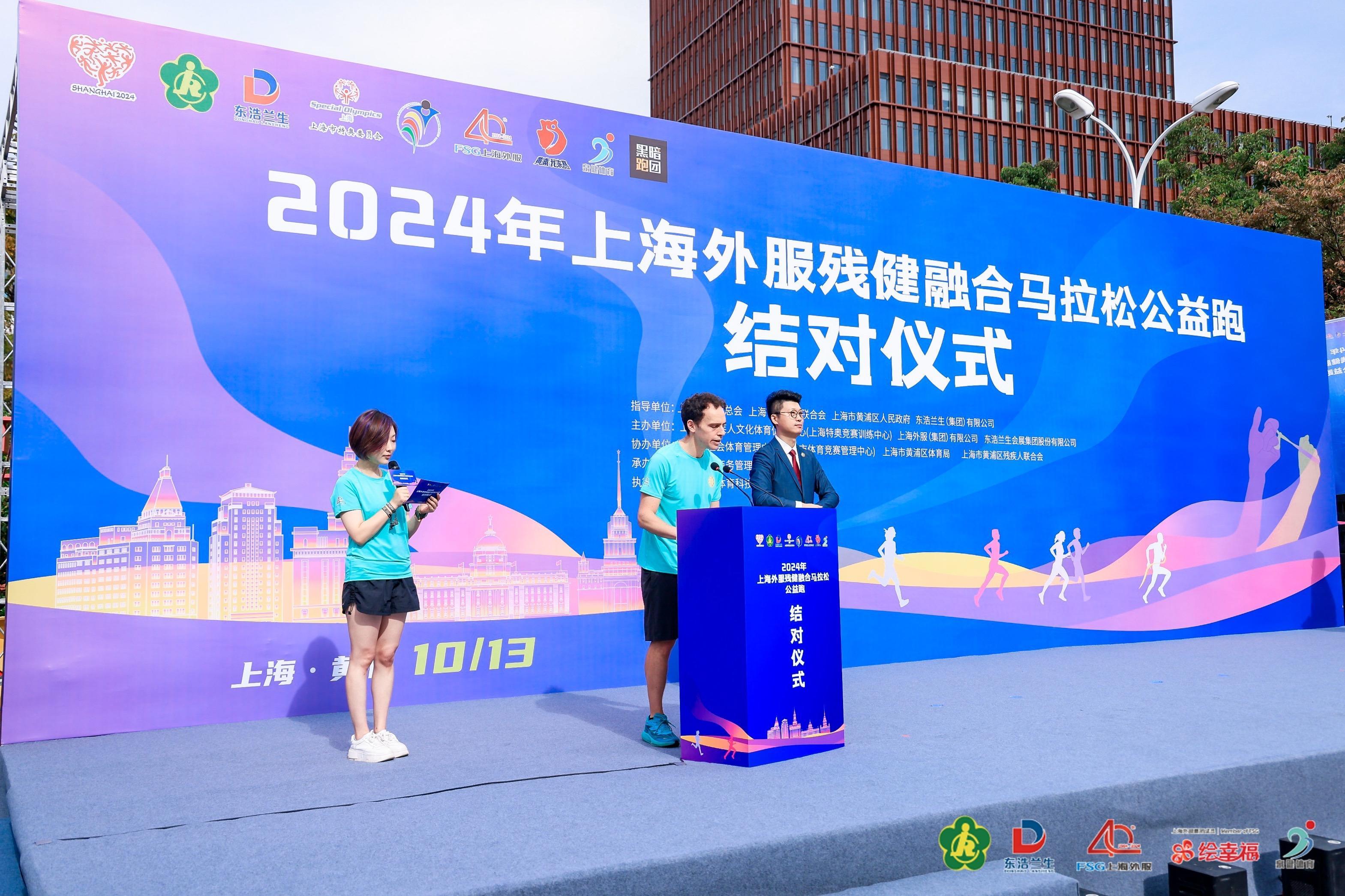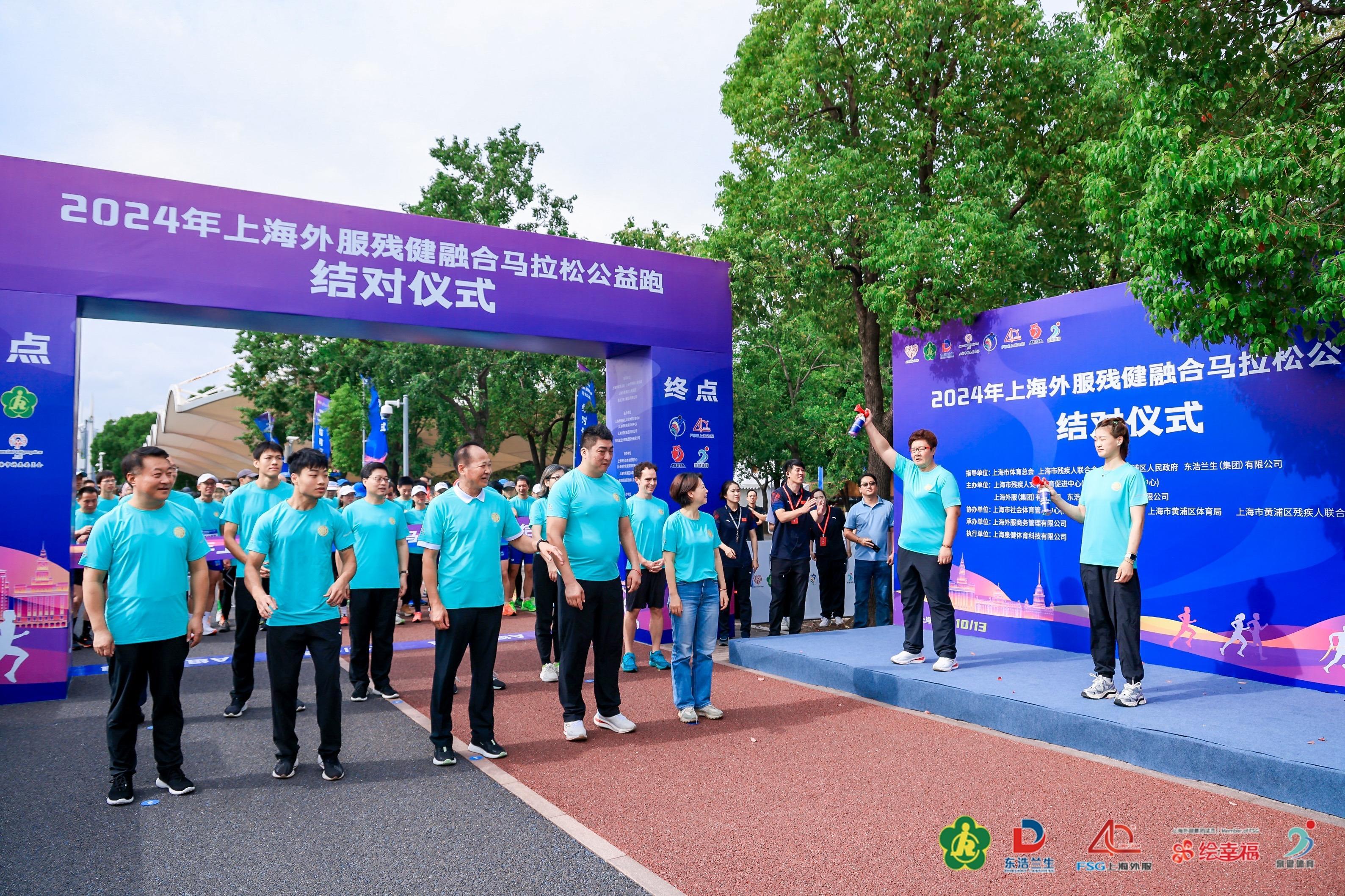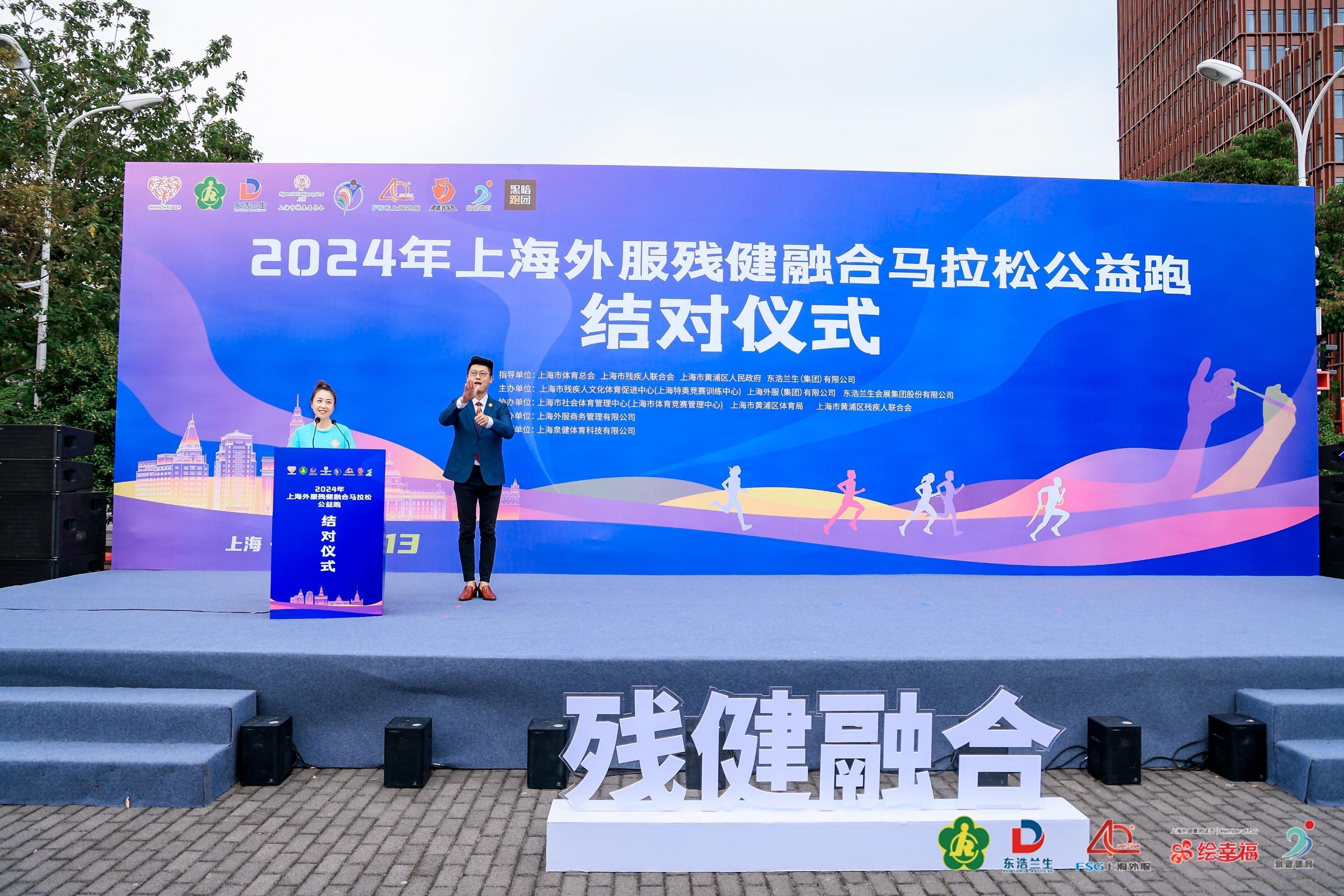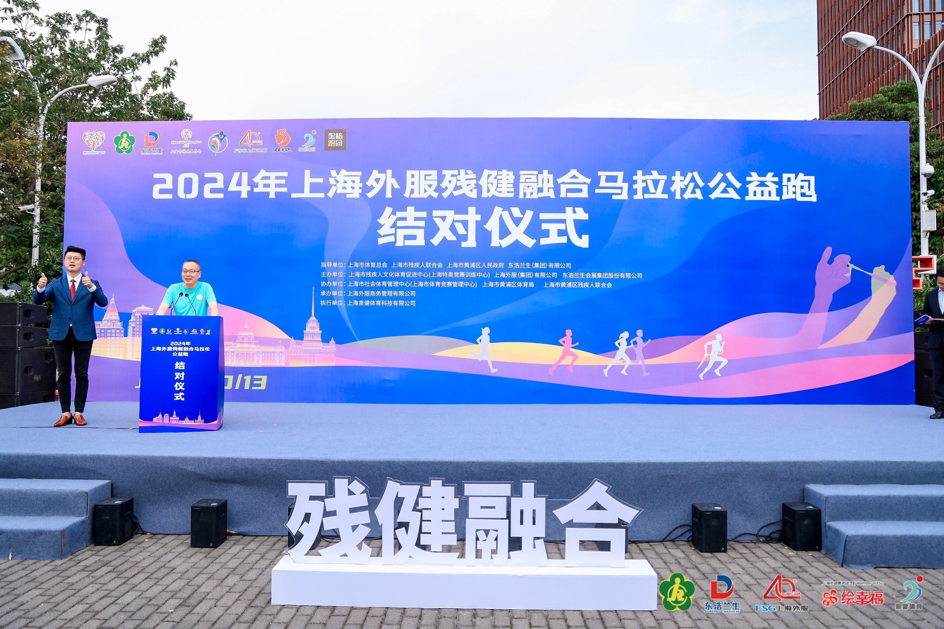10 月 13 日上午,2024 年上海外服残健融合马拉松公益跑结对仪式在黄浦滨江举行。本次活动由上海市体育总会、上海市残疾人联合会、上海市黄浦区人民政府、东浩兰生(集团)有限公司共同指导,上海市残疾人文化体育促进中心(上海特奥竞赛训练中心)、上海外服(集团)有限公司、东浩兰生会展集团股份有限公司联合主办,上海市社会体育管理中心(上海市体育竞赛管理中心)、上海市黄浦区体育局、上海市黄浦区残疾人联合会协办,上海外服商务管理有限公司承办,上海泉健体育科技有限公司执行。上海市体育总会常务副主席赵光圣,上海市残疾人联合会党组成员、副理事长汤艳,中共黄浦区委副书记李忠兴,黄浦区人民政府副区长王槐,巴黎残奥运动员代表:轮椅击剑运动员辜海燕、田径投掷运动员张亮敏、田径投掷运动员傅昕瀚和上海残疾人田径队运动员代表,以及来自市、区相关职能部门的领导和工作人员,企业嘉宾、残障跑者、陪跑志愿者们齐聚于此,以跑步为桥,共同绘就“平等、参与、共享”残健共融的动人画卷。