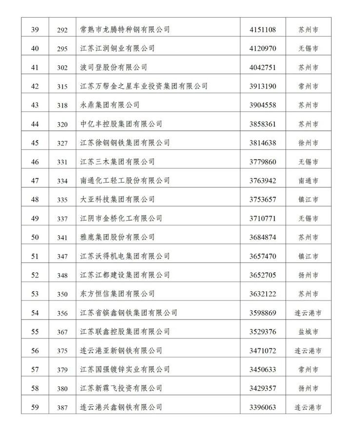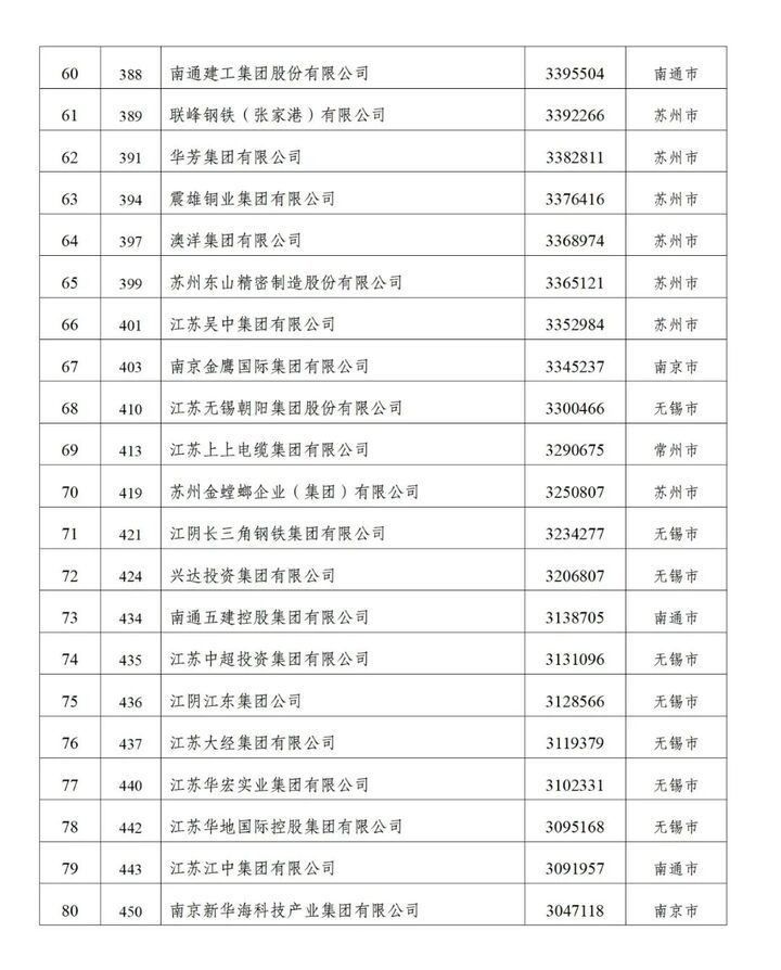 值得一提的是,江苏入围企业的整体经营保持平稳,营业收入、资产总额、利润总额等关键指标均实现了稳步增长。同时,这些企业在科技创新、社会责任等方面也取得了显著成绩,为推动经济持续回升向好、促进社会就业作出了重要贡献。