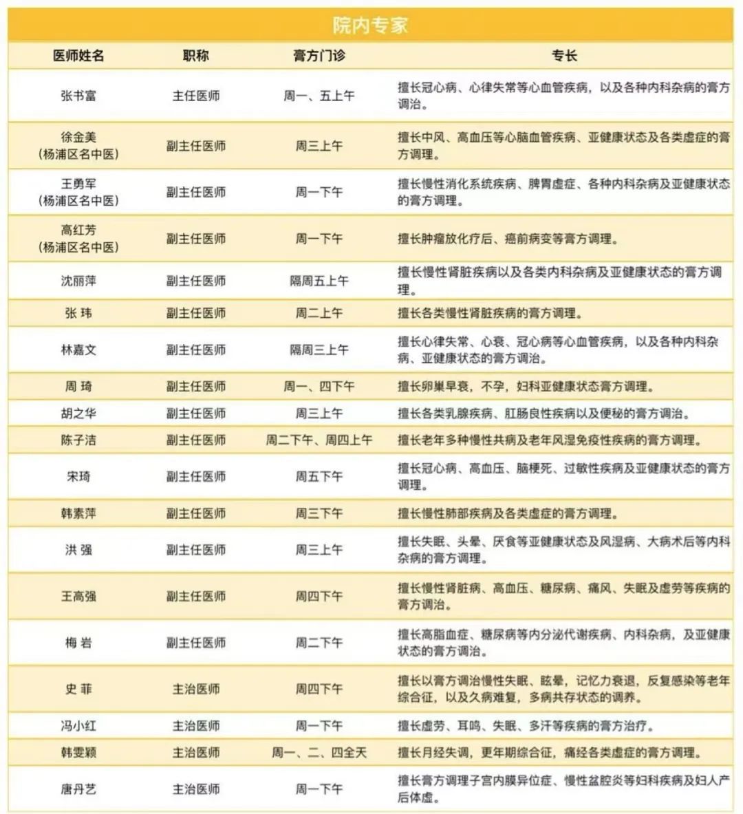 杨浦区中医医院膏方团队由上海市名中医、杨浦区名中医、上海市中医药大学知名教授等多位名老中医、资深专家组成。