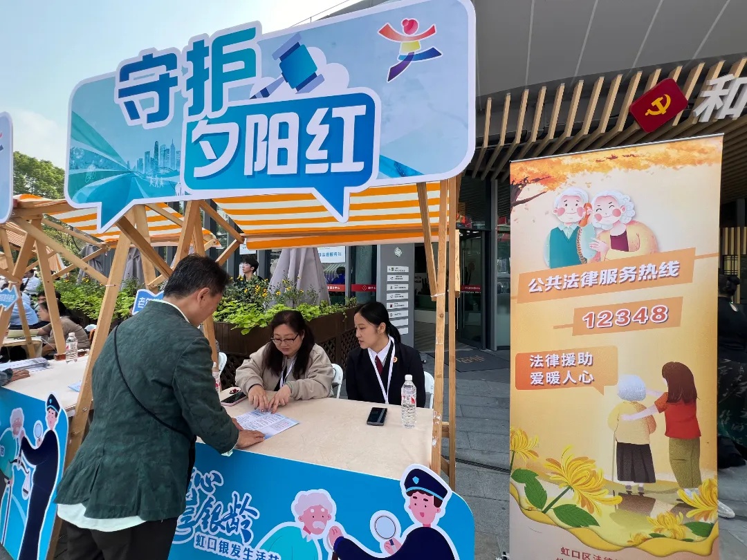 10月10日,虹口区法律援助中心派出工作人员和三位援助律师在和平公园举办的2024年“敬老月”主题集市上开展老年维权联合接待,发放宣传手册百余份。