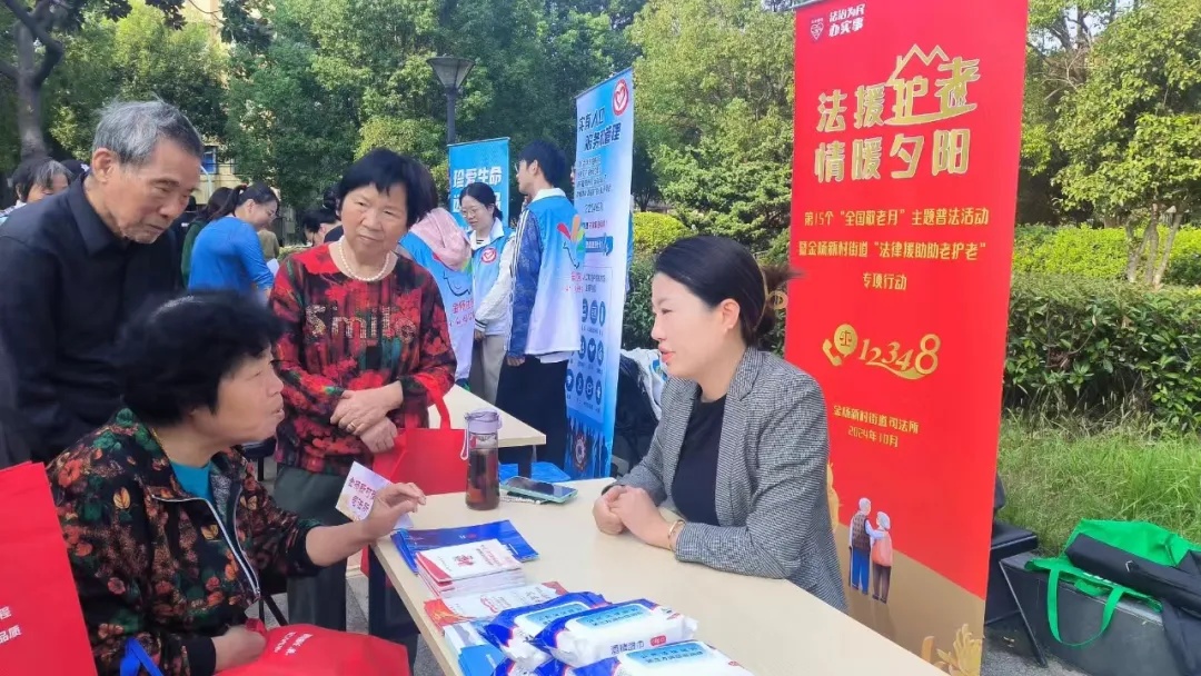 中心还联合嘉兴路街道司法所,在老年人聚集的社区开展重阳敬老专项宣传活动。活动现场,工作人员和上海市天一律师事务所陆可威律师以一对一的方式,细致了解老年人法律服务需求,答疑解惑,并耐心告知法律援助申请事项及流程,引导老年人运用法律维护自身合法权益。