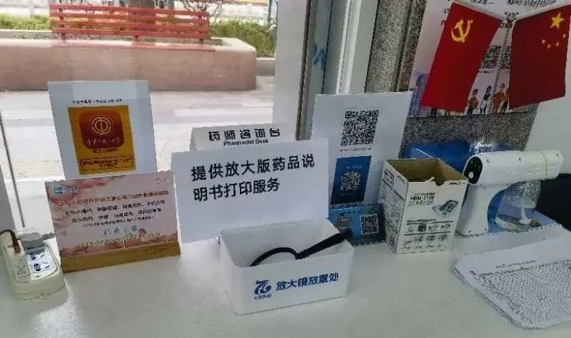 针对药物说明字号太小的困扰,配置一个放大镜,提供一张放大打印版药品说明书,方便老年人取阅,解决“字小如蚁”的购药阅读障碍。针对药品说明书专业术语充斥、晦涩难懂的困扰,设立一个适老服务台,安排一名职业药师,提供药物咨询解答,解决老年人在合理用药、安全用药方面存在的隐患。