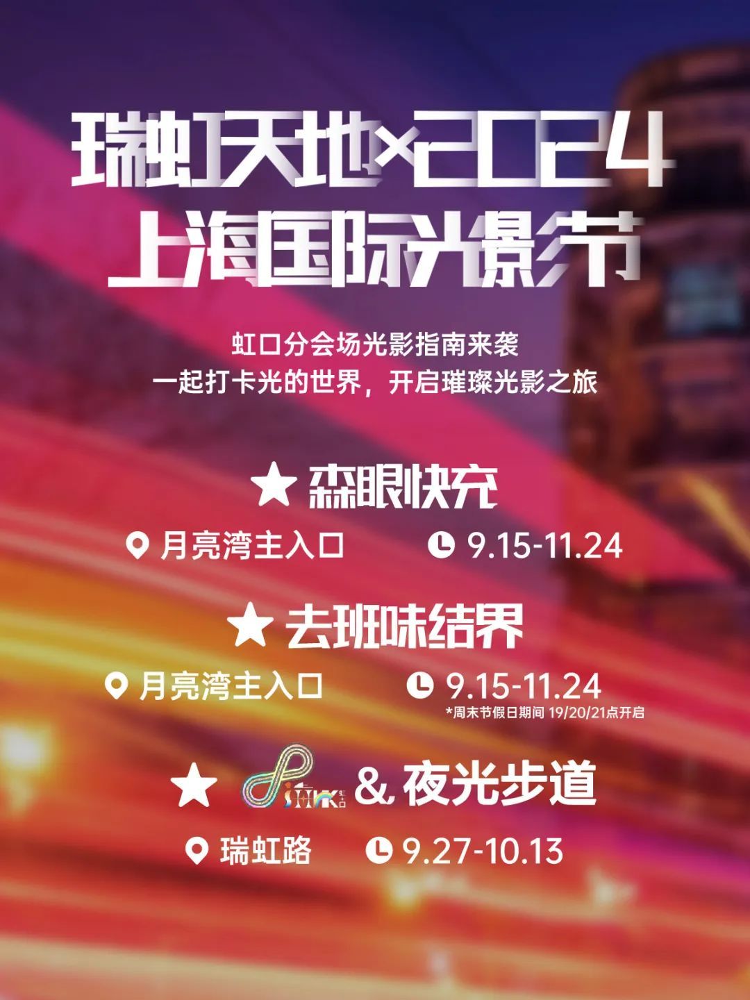 ✦ 时间:9月15日至11月24日(周末节假日期间 19:00、20:00、21:00 开启)