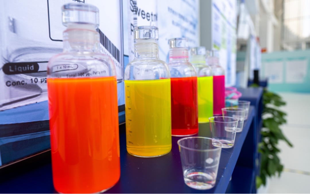 今年上半年,全市22家合成生物规上企业实现营收29.7亿元,同比增长9.3%。江大合成生物基础研究中心展台上,氨基酸、透明质酸、微生物色素染料等合成生物制品一字排开。