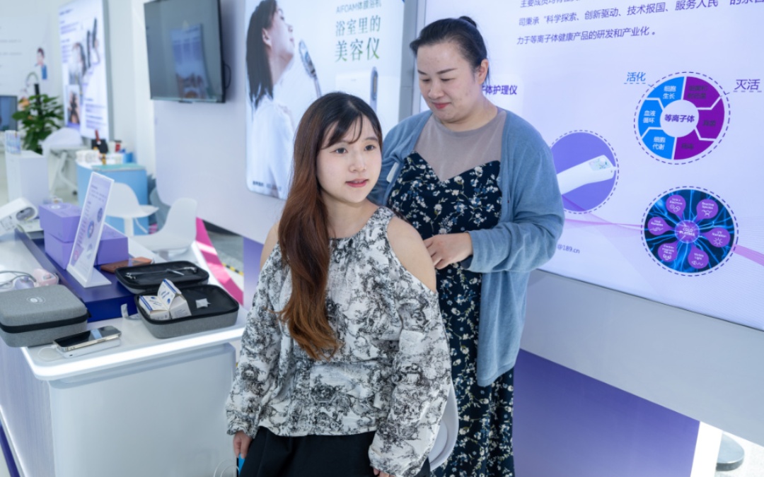 展示中,“居家胶原水光”家用医美护肤品、糖尿病患者也可放心吃的慢糖米、各种功效益生菌等蕴含高科技却又十足接地气的产品纷纷亮相。