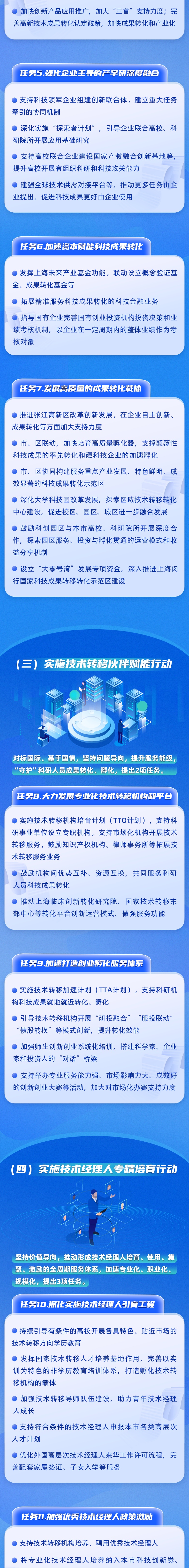 市科委介绍,为进一步提升科技成果转化效能、加快培育发展新质生产力,市政府办公厅近日印发《上海市促进科技成果转移转化行动方案(2024-2027年)》。《行动方案》重点任务提出实施成果转化改革攻坚行动、实施企业创新加速行动、实施技术转移伙伴赋能行动、实施技术经理人专精培育行动、实施技术要素市场联通行动、实施转化生态协同共建行动等6方面18项措施。