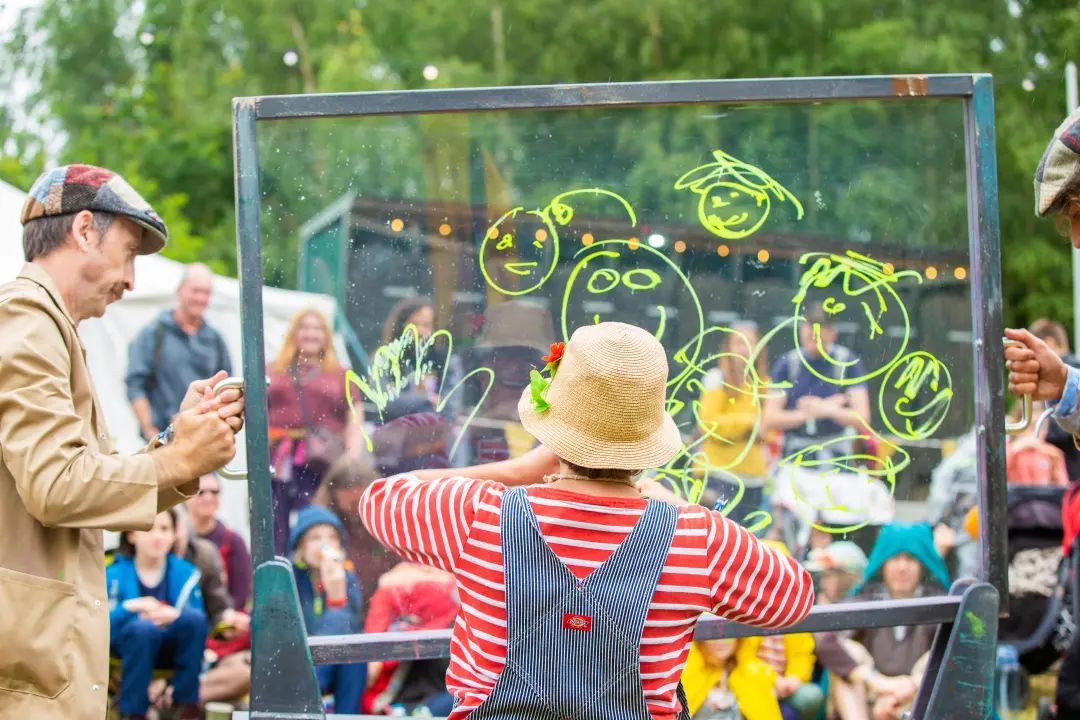 基于凤凰的神话传说,这场三段式演出将以Bamboozle剧团独特的木偶、卡通角色和现场音乐为特色,还有一支调皮的小鸡爵士乐队,手中的彩笔在玻璃上欢快地舞动,五彩斑斓的泡泡在微风中轻盈地飘起,与玻璃上的笑脸相映成趣。