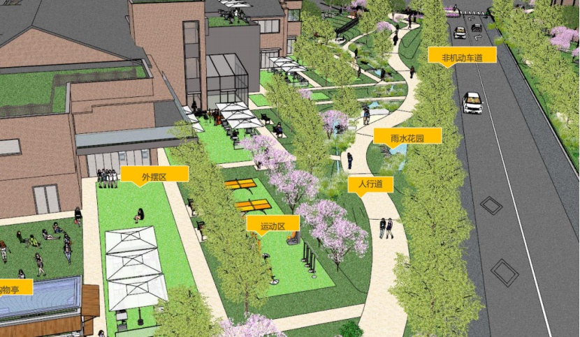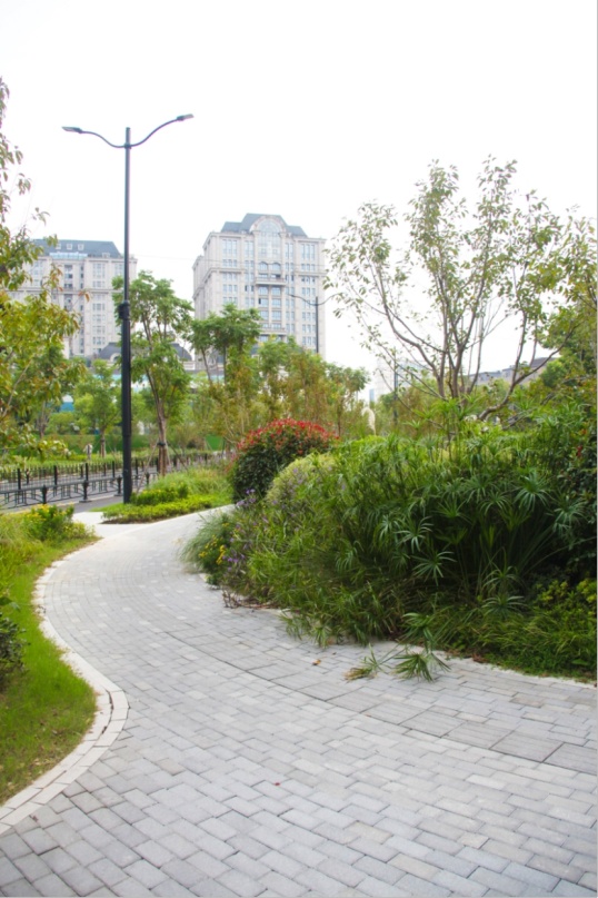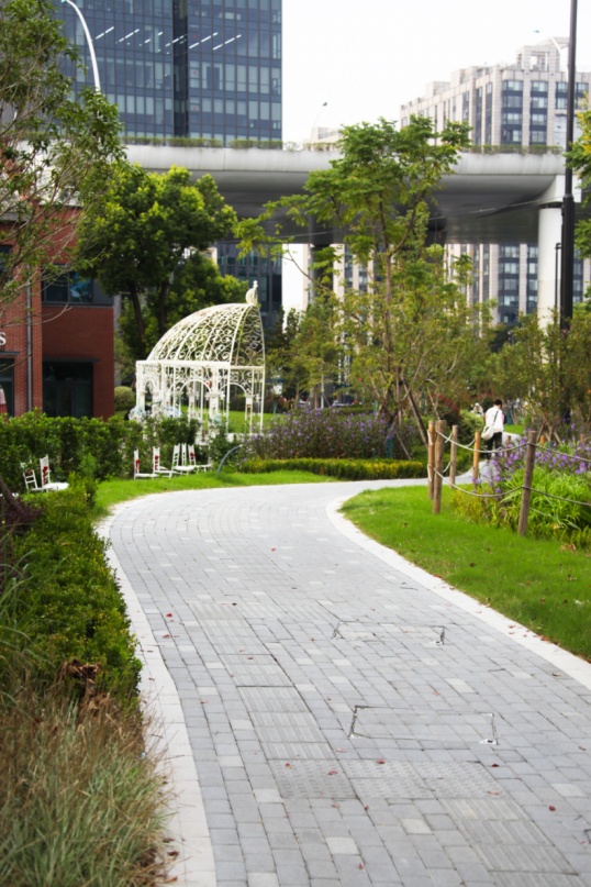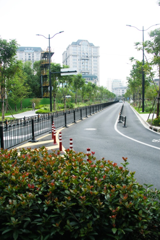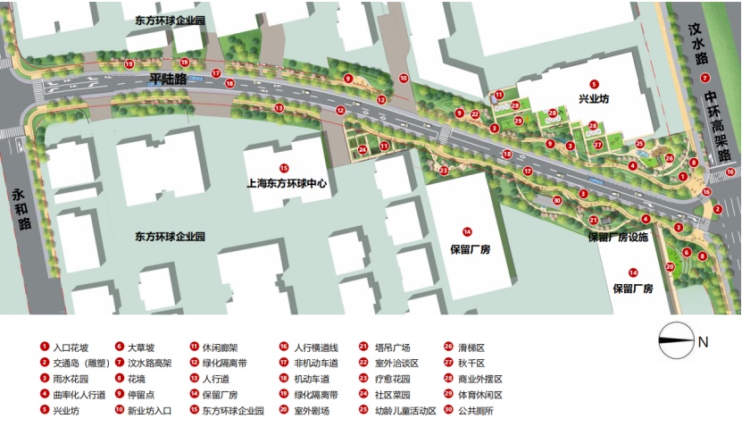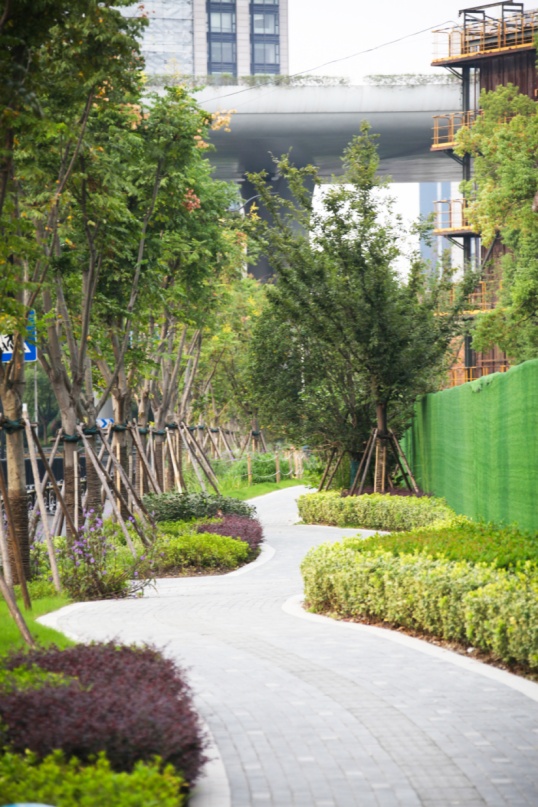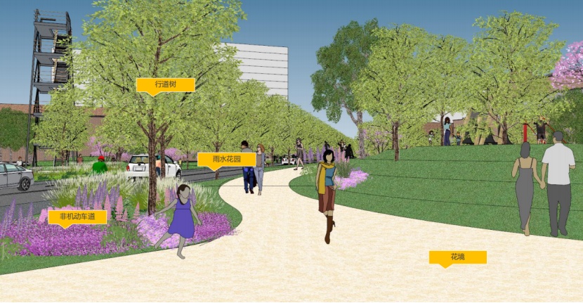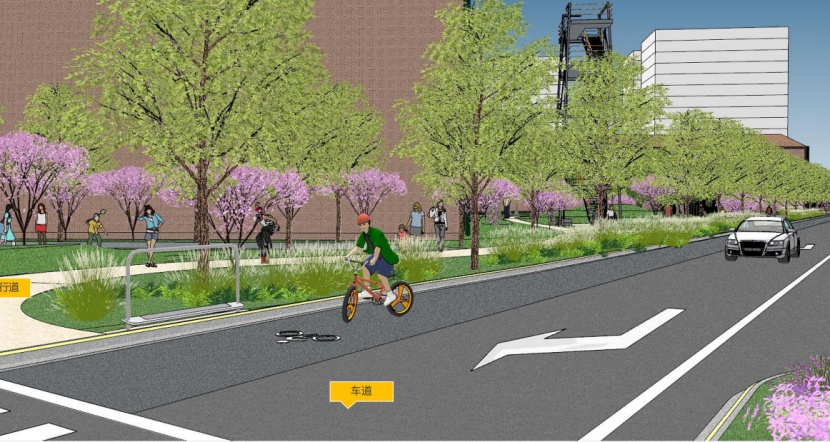 平陆路(永和路-汶水路)临近汶水路中环高架,是区域内部的一条南北向支路。该项目是我市景观提升的首条试点道路,开创了道路景观化设计的先河。过程中经过静安区规划资源局与周边地块的不断协调,相关企业的通力配合,市区联动,形成合力,最终完成了景观化提升方案,由市规划资源局审批通过。如今,道路已经按照当初的方案实现了提升与落地。 在对该道路进行方案审批时,始终贯彻公园城市理念及《上海市街道设计导则》,打破固有市政路模式——人行道曲率化设计,从以车为本转变为以人为本,结合地形打造以人为本的公共景观。 为了实现园区、街区、绿地空间互融合的公共空间,静安区规划资源局与大电气等周边企业积极沟通,说服他们开放园区围墙,打开地块内绿化,将园区、商业和公共绿地环境有机融合,同时激活产业空间活力,形成互利双赢。 鸟瞰效果图 人行道曲线化设计,将2.5米宽的曲率化人行道,其中1.8米宽范围全部布置在道路红线内,满足市政人行道规范要求。 断面实景图 提升绿量、引入自然、增强人性化设计及公共绿地的参与性 ,激活产业街坊活力,打造“车在公园边,人在公园里”的街景效果。 曲率人行道效果图(一) 曲率人行道效实景图(一) 植入年轻人的活动功能,形成绿地和商业餐饮空间的内外融合,激活场地。 曲率人行道效果图(二) 曲率人行道实景图(二) 曲率人行道实景图(三) 激活产业街坊活力,打造产业街坊的慢行街区、增加绿量的同时,增加产业园区人员的日常绿地内的休憩、使用功能。 汶水路路口实景图 汶水路路口效果图 汶水路入口效果图 汶水路入口实景图 自行车友好,划分自行车停靠区域。 设置自行车停靠区域