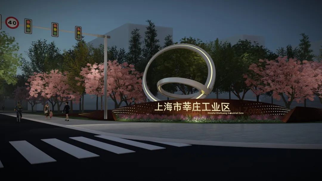将金都路中春路路口打造为现代创智舞台,以充满科技感的设计展现莘庄工业区门户形象,并设置发光主题LOGO,点亮夜间道路。还将对原有门户广告牌进行提升,进一步优化“窗口”环境。