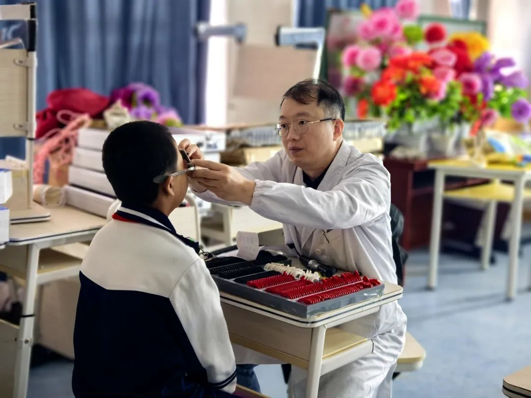 9月底,银医志愿团队伴着晨曦出发,并在抵达青海西宁后,马不停蹄投身工作。复旦大学附属眼耳鼻喉科医院的医护工作者们秉持医者仁心,充分发挥所长,为西宁市湟中区鲁沙尔第一小学、鲁沙尔第二小学、多巴镇新墩希望小学、湟中区博华学校的5700余名学生开展了普遍性筛查、眼底检查、屈光筛查等多项检查,还向学校老师和孩子们讲解护眼小常识,教育他们掌握正确书写姿势,帮助少年儿童养成良好的用眼习惯和生活方式,切实把“爱眼”“护眼”的观念留在西宁。本次“爱目行动”,也让更多人关注到了少年儿童的视力健康问题。后续,相关机构也将继续多措并举,致力关切孩子们的视力健康,让更多纯净的眼睛看到希望的光芒。