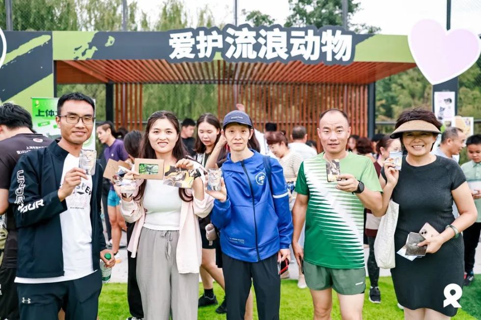 此外,每位参赛选手的背包里都放置了一张特殊的贴纸,上面写着“抵制虐待动物”。选手们可以将它贴在参赛服的任意处,用自己的奔跑为流浪动物发声。活动现场,上海体育大学流浪动物救助组织也通过展台活动替流浪生命们争取更多关爱。