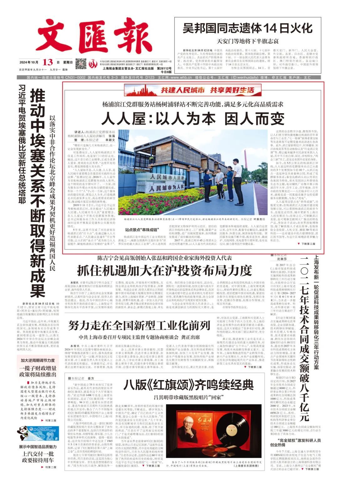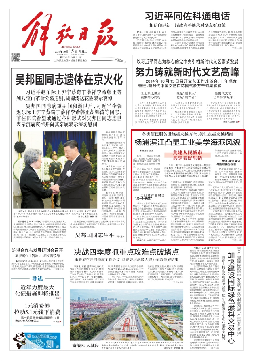 今年是人民城市理念提出五周年。作为首提地的杨浦,数字经济蓬勃发展,生活青春涌动,一起来感受这座越来越“YOUNG”的人民之城…… 探寻城市更新的活力 感受烟火气息的美好 细品人文关怀的温度 …… 连日来 《解放日报》《文汇报》 《新民晚报》等市级媒体 纷纷聚焦杨浦 分别在头版报道了 杨浦滨江打造城市公共空间样板 “人人屋”不断完善党群服务功能 228街坊的惊艳蜕变 人民城市,杨浦实践 诠释“城市让生活更美好” 一起来看 详细报道 解放日报 《解放日报》报道了在人民城市理念指引下,杨浦滨江公共空间打造过程中呈现的文化底蕴和人文关怀。