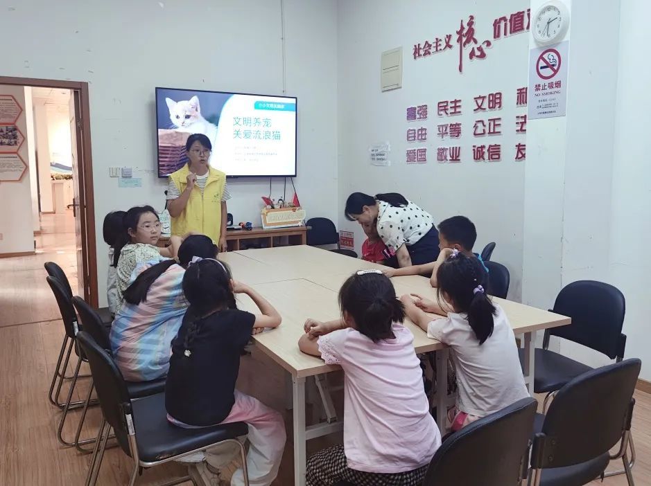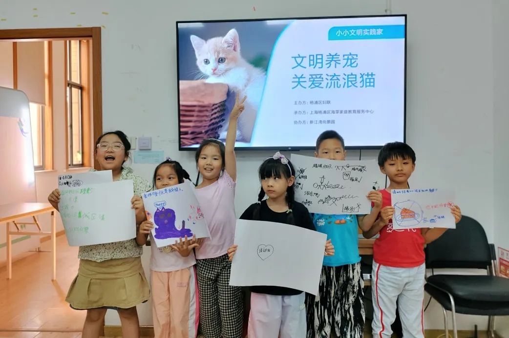 近日,新江湾尚景园小区里开展了一场有关文明养宠、关爱流浪猫的主题活动。活动伊始,志愿者老师就流浪猫现状和亲子家庭展开了讨论,通过一些生动的案例,让大家系统地学习了“关爱流浪猫”的文明养宠方式。围绕“怎么喂才更科学”“如何科学帮助流浪猫”等问题,大家各抒己见、深入交流。“保持距离、不随便喂食、打疫苗收养流浪猫、绝育、志愿者轮流管理猫屋”等等解决方法的提出,让我们看到了一群“小小议事员”的思考和成长。