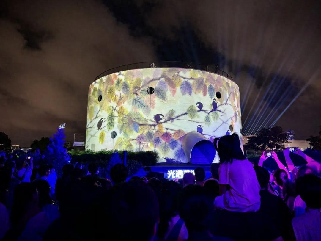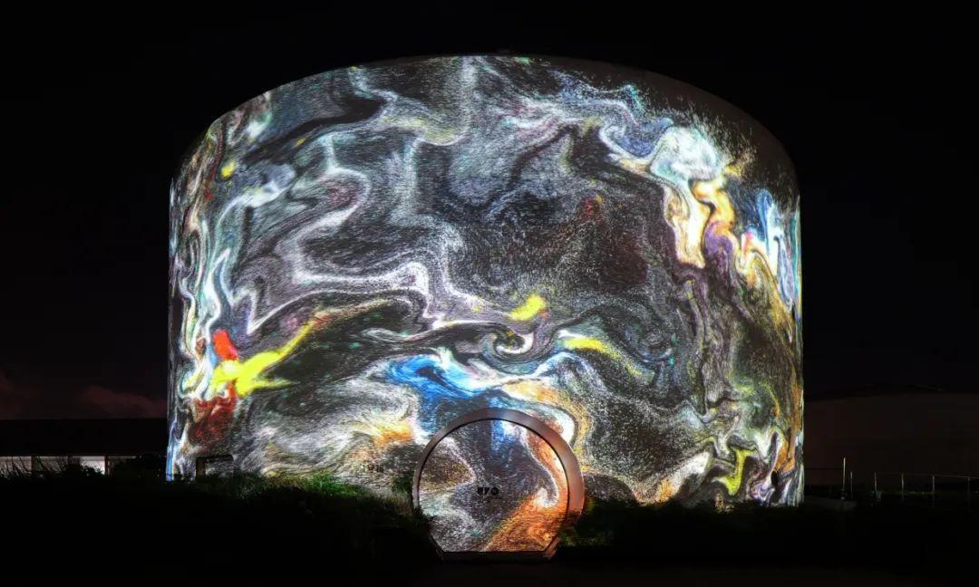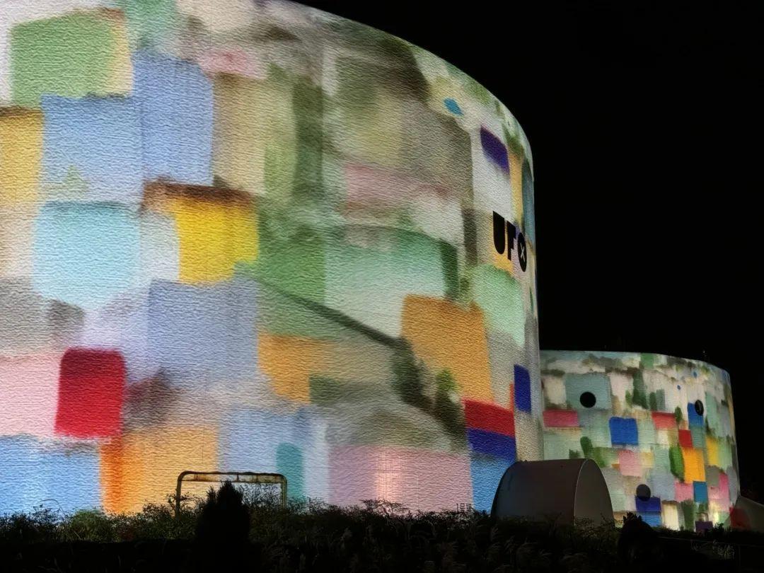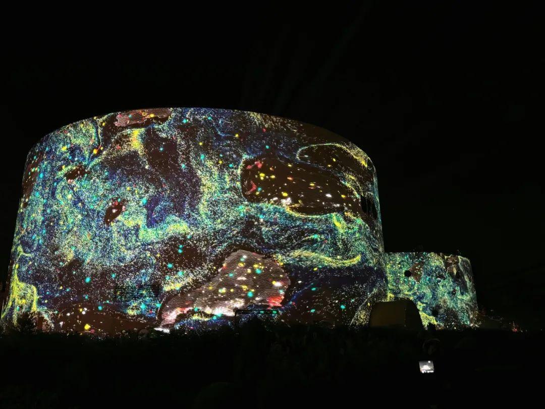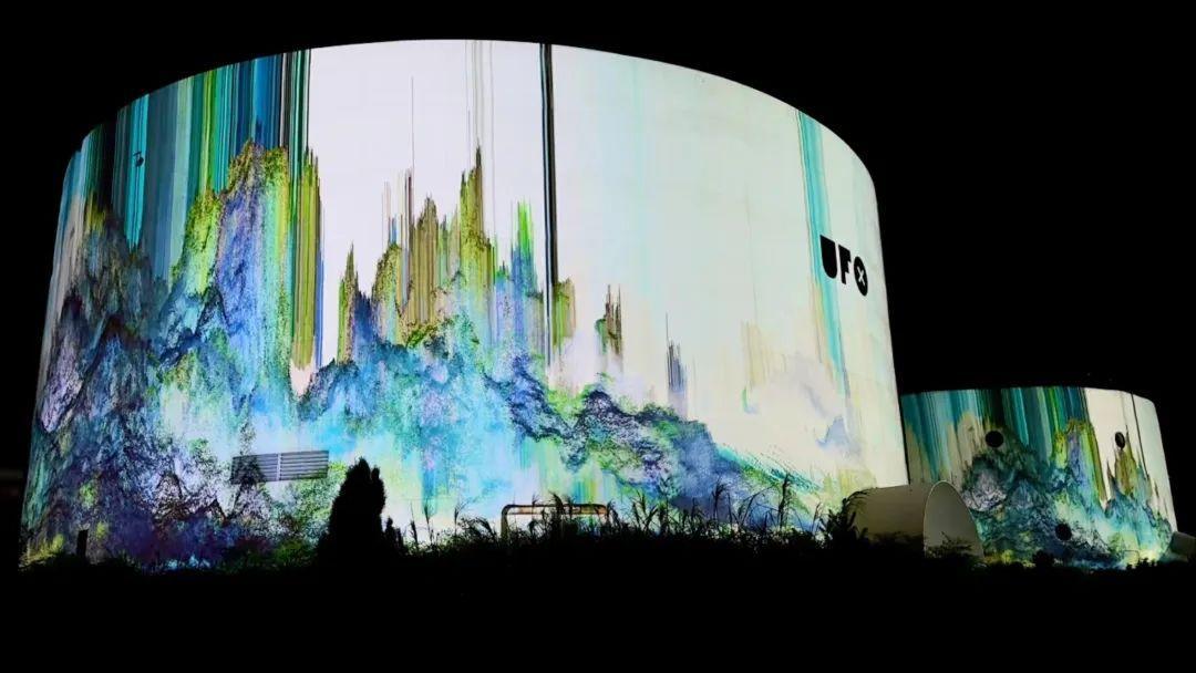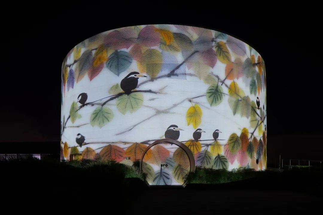 “中国式风景·特别篇”借助油罐表面本身的粗粝材质,使光影呈现出纸本、油画、水彩等不同的质感与笔触,高流明超高清投影机让画面细节纤毫毕现,栩栩如生,让建筑焕发出艺术的生机。