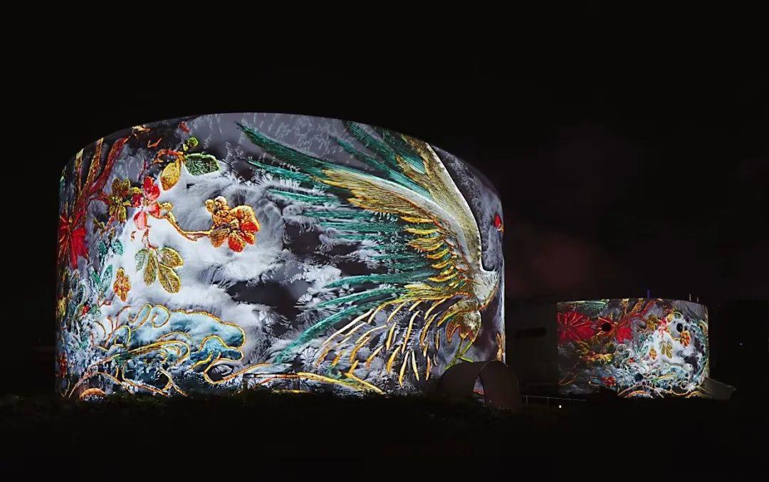 《江南万象——中国式风景》共包含“水墨烟波”“织锦岁月”“剑影碧落”与“中国式风景·特别篇”四大光影主题。以油罐艺术中心1、2号油罐外立面为画布,利用震撼的Mapping形式,让艺术氛围瞬间填满整个场域。观众置身于四重光影盛宴变换交织的梦幻秀场,通过科技与艺术的融合,唤起对中华传统文化与江南诗意美学的向往。
