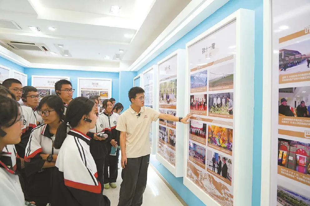 上海市援疆前指开放日活动中,来自喀什六中的70余名各族学生参观“申情无限 大爱兴疆”上海援疆工作纪实展,与援疆干部互动交流,近距离感受援疆干部的工作、生活,有效拉近了援疆干部与当地群众的距离。