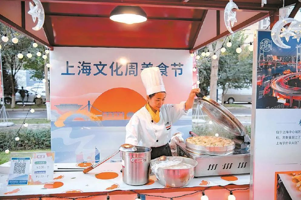 上海美食周和上海老字号商品展区,集中展示来自上海16个区的特色美食和商品