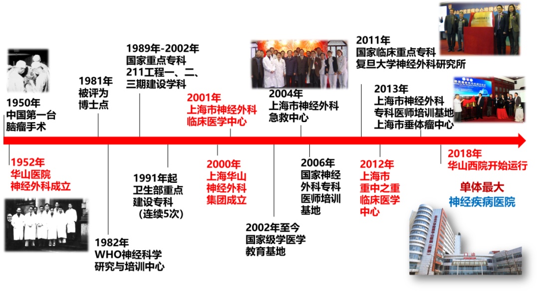 华山医院神经外科到今年有72年了,经历了四代人。其中有一些比较经典的、标志性的历程,比如说1950年中国第一台脑肿瘤手术。这个肿瘤是一个恶性的胶质瘤,标本至今存放在我们上医的病理教研室里面。上一次我在整理科室历史的时候,特地到上海图书馆去借了当时的报纸。报纸上报道的标题不是华山医院第一例,而是‘上海开展新中国第一例脑肿瘤手术’。
