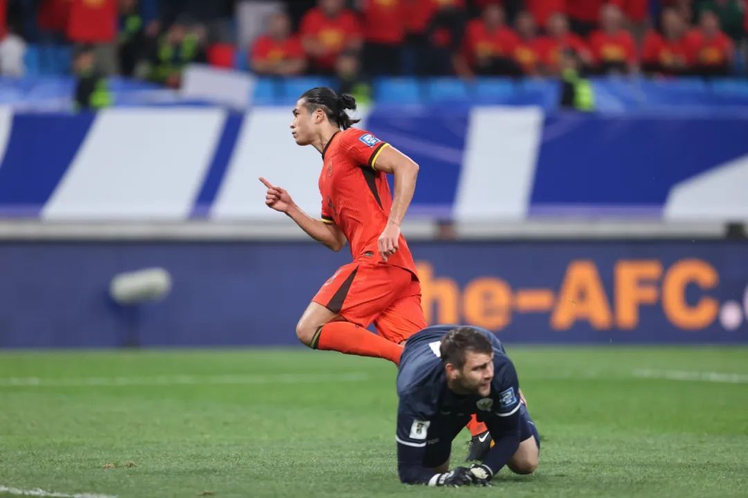 第44分钟,国足小范围打出精妙配合,高准翼在中场外脚背一记巧妙直塞,张玉宁反越位成功,单刀球冷静推射破门,进球后的他也激动痛哭。半场结束,国足取得2比0的优势。