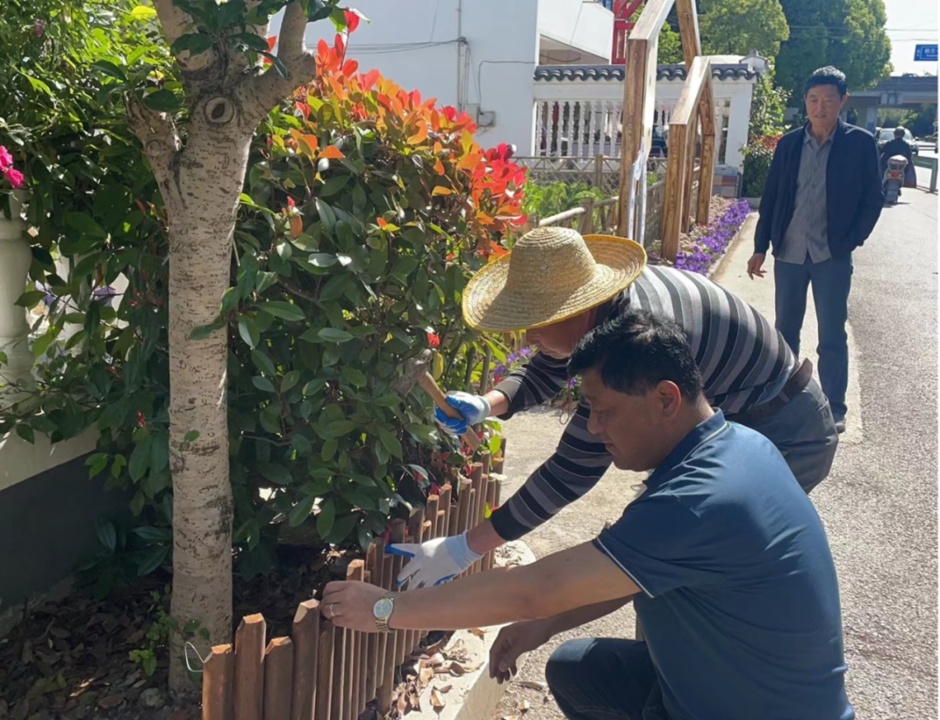 曙光村的共建单位上海朋泰机械科技有限公司也主动参与进来,为此次改造活动赞助了一万元,用于村中庭院里面的一些硬件提升,以及花草配送。