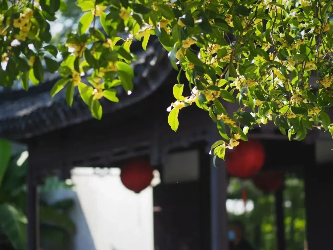 园内的桂花散落在各个角落,每一株都能与白墙黛瓦、楼堂亭榭相互映衬,形成精致又富有意境的风景画,满满的诗情画意。