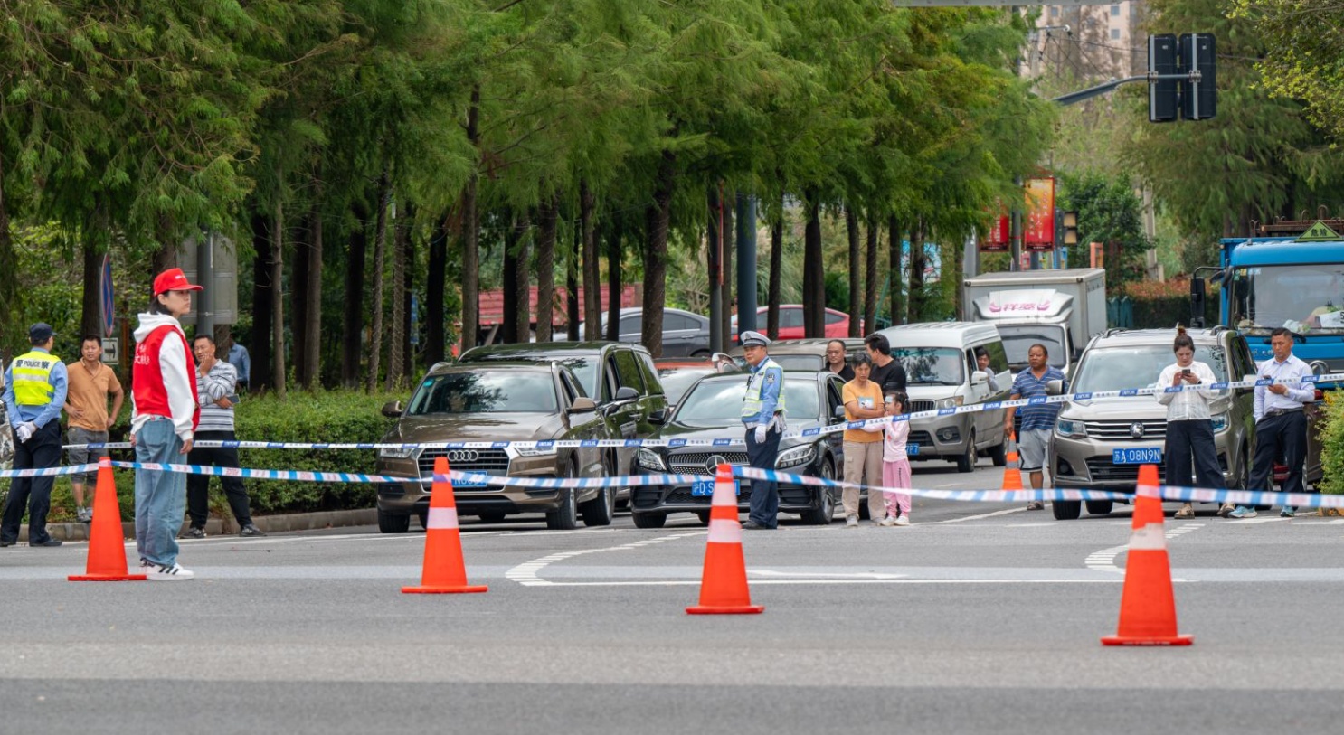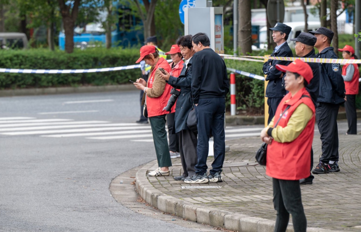 从上海长兴岛郊野公园门口到秋柑路、潘圆公路两侧,到处活跃着身穿红色背心的市民志愿者。其中既有年轻的基层工作者、企事业员工,也不乏热心的老阿姨、老爷叔,他们坚守各自的分区,同赛事安保人员相互配合,共同维持赛事现场平稳有序。