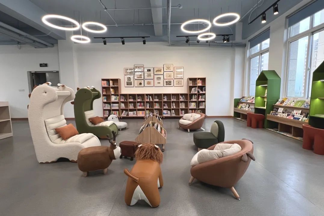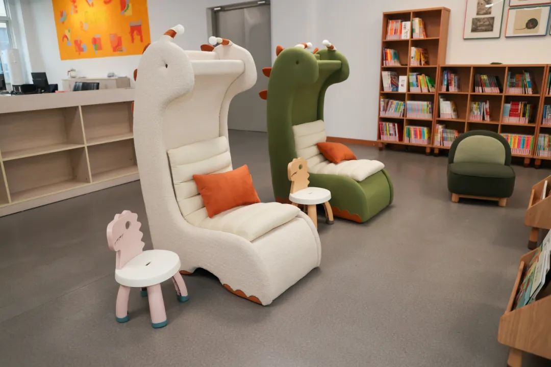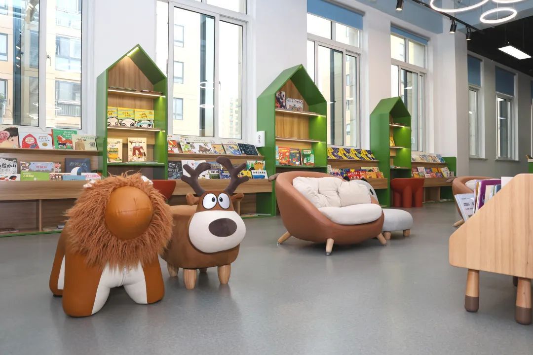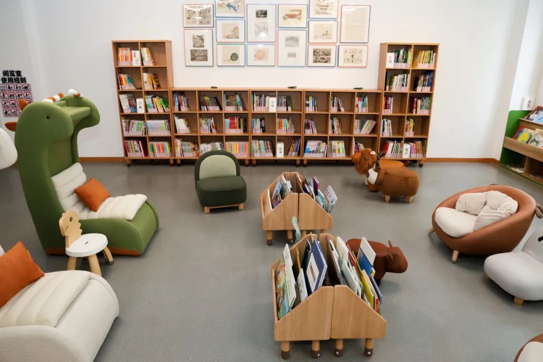 这里配备了各种适合儿童使用的设施工具和阅读角落。舒适的沙发、适合孩子看书的小座椅以及柔软的坐垫加上可爱的装饰,营造出温馨而宁静的阅读氛围。像这样具有童趣的环境,让孩子在阅读过程中感受到更多的关爱和呵护,他们可以在这里放松身心,享受独属于自己的阅读时光。