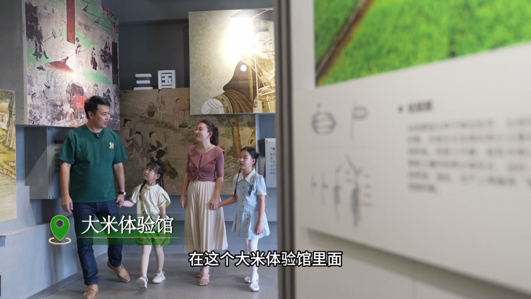大米文化体验馆,建筑面积380平方米,共有4层,设在稻田中间。大米体验馆以“稻米就是生命”为主题,以米说千年、米说丰年、人间米香三大主线展示大米的发展和演变,集文创、互动和体验为一体。