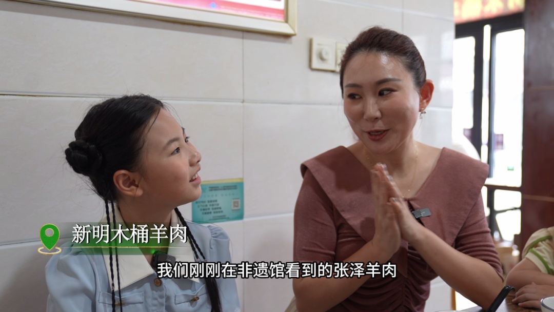 张泽羊肉非遗传承人介绍,羊肉用传统的木桶烹饪方式烧制,汤底鲜香浓郁。“小种子”一家围坐在一起,其乐融融地品尝这道舌尖上的非遗美味。