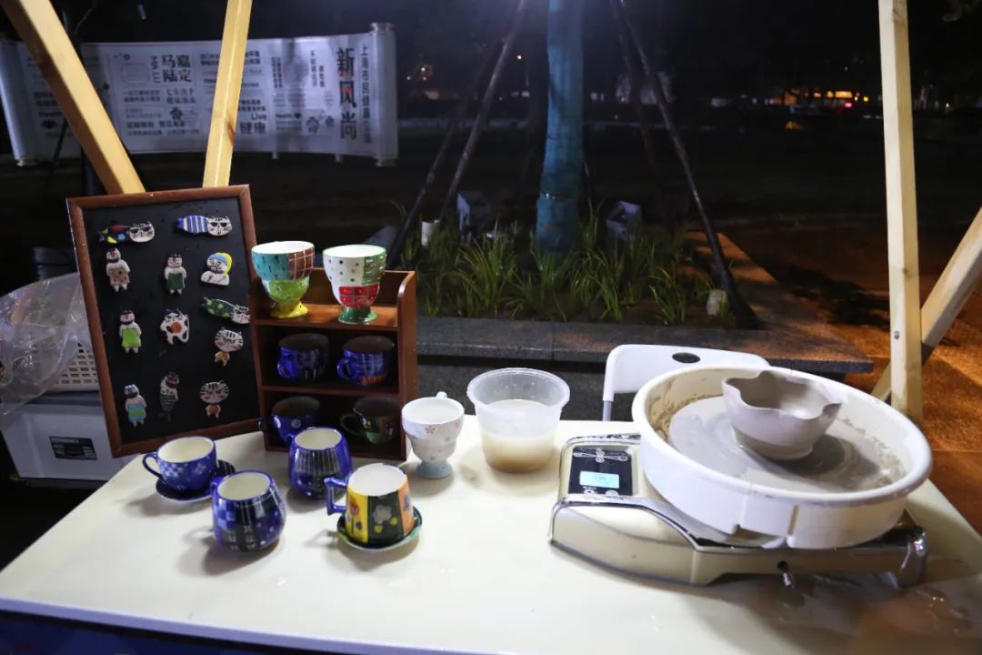在一家手作陶艺摊位,一排排精致的陶艺杯子整齐摆放着,不同色彩的花纹格外引人注目。摊主一边耐心讲解陶艺的制作工艺,一边鼓励大家亲手尝试。参与陶艺制作的唐先生表示,这样的互动不仅增加了乐趣,还让市民对传统手工艺有更深的理解。