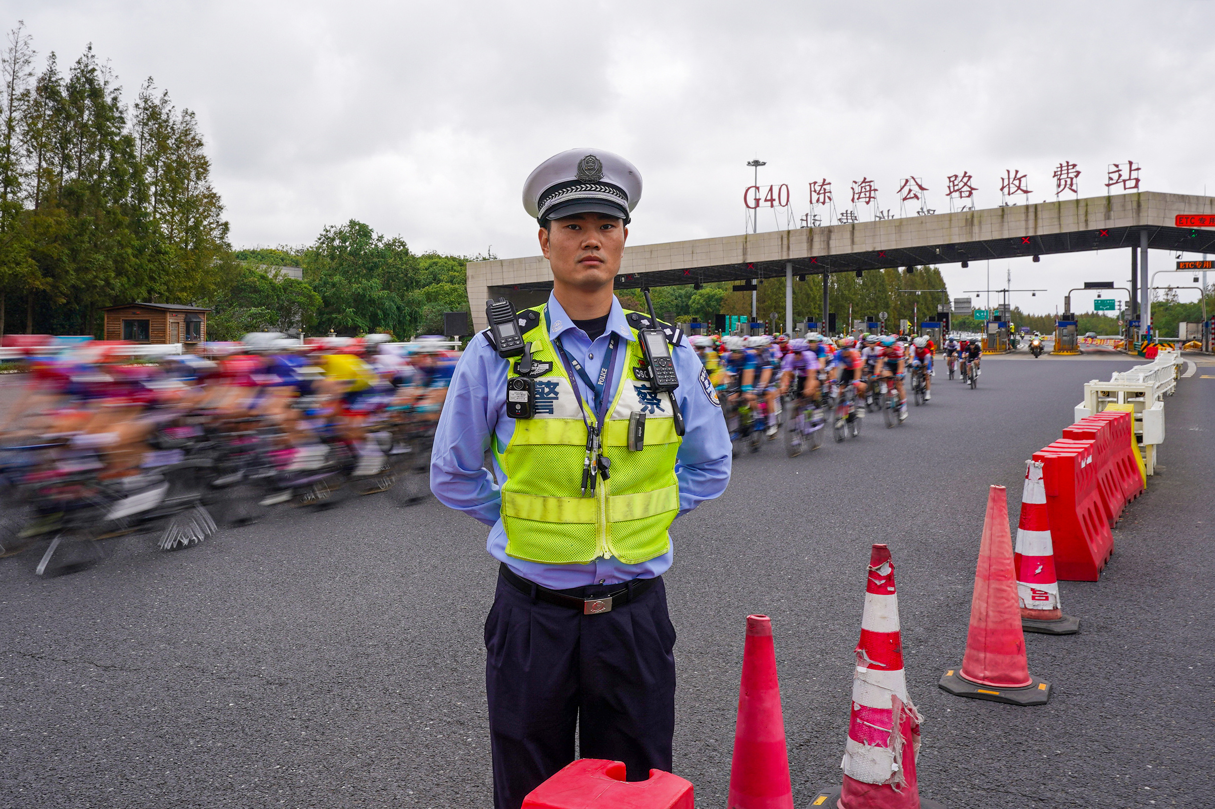民警在比赛途经点执勤,认真执行“一点一方案”