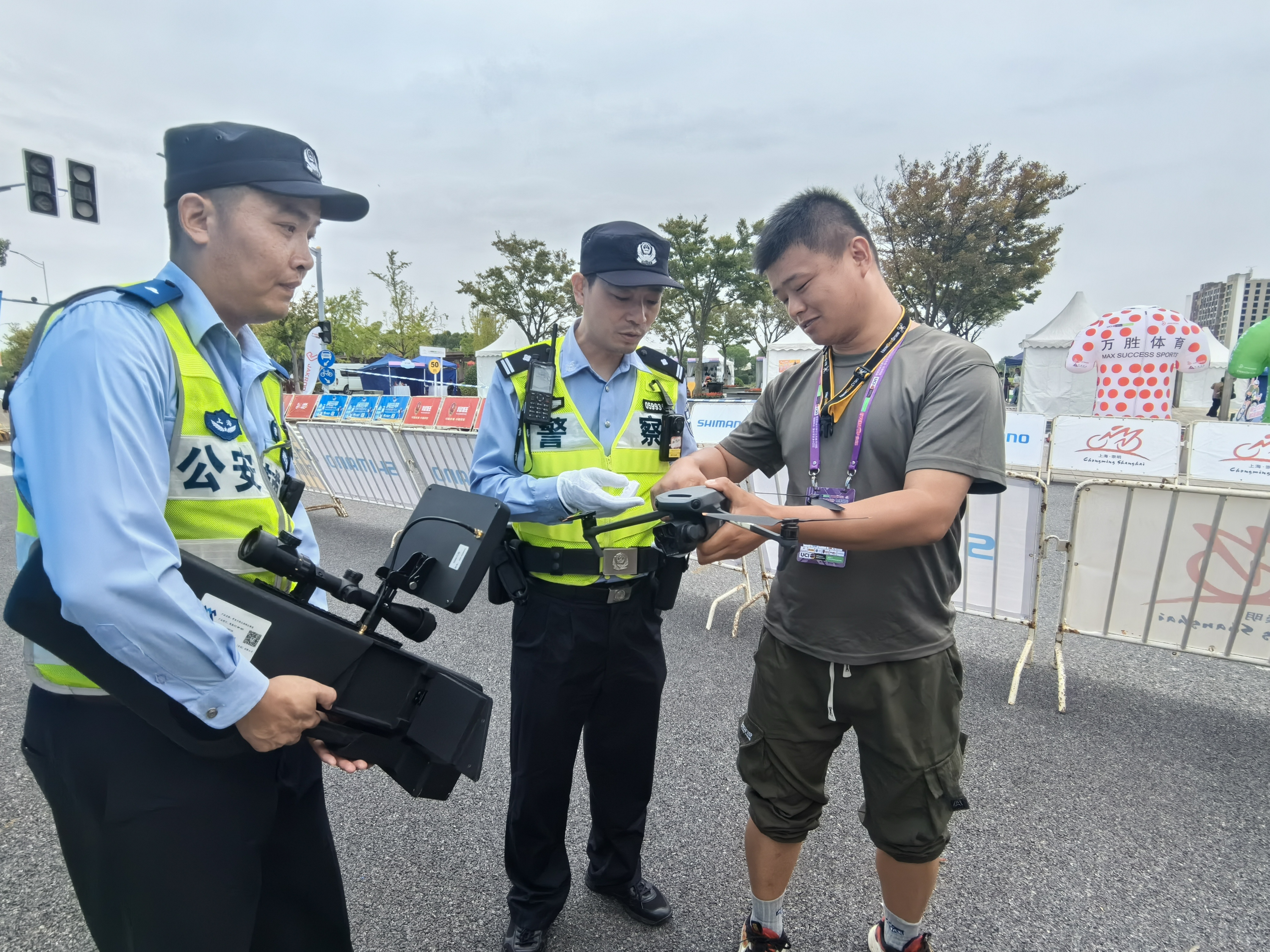 为确保本次自行车赛顺利进行,崇明分局积极构建立体化安保网络。在地面赛道沿线、赛事起终点,分局重点部署安保力量,设立安检点和临时警务站;在赛事途经赛道,加强与属地乡镇安保工作负责人沟通协调,制定途经赛道沿线管控方案,科学合理布置相对固定岗和流动管控岗,采取设置警戒线等措施,确保赛道真空,做到无缝衔接,实现赛道绝对安全;在空中,分局通过加强警务航空队警用直升分机巡逻、无人机巡逻,实行空中观察实时掌握比赛线路以及周边地区的交通和人流情况,实现空中图像与分局指挥中心实时共享,空中地面联动指挥;在网络安全方面,分局加强对涉赛舆情的智能监测和研判分析,营造积极良好观赛氛围和网络空间,有效预防各类网上风险隐患,实现网上网下、线上线下立体化安保网格,确保赛事顺利进行。