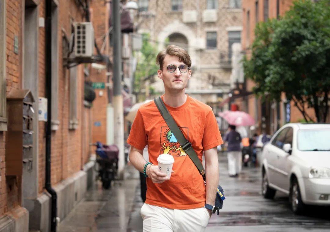 在上海南京西路充满历史韵味的石库门弄堂里,来自比利时的高悦正举着手机,专注地进行着一场特别的视频创作:“大噶好,吾是高悦(大家好,我是高悦)”……他正在用一口流利的上海话录制视频。高悦的创作,引来了居民们的围观。“是个外国人啊!”一位上海阿姨凑近仔细打量了这个金发碧眼的小伙以后,惊讶地感叹道,“上海闲话讲得蛮嗲的嘛!”亲切的互动,不仅让高悦感到自信满满,也给视频带来意想不到的真实感和趣味性。高悦,本名Tobias Le Compte。2008年初,他第一次来到上海,就觉得这里宛如他的第二个故乡。在这座城市居住多年以后,他被这里的文化深深浸润着,更学会了地道的上海话。高悦深信,方言是一方文化的“心”。他开始在社交媒体上录制说上海话的视频,分享他的日常生活,渐渐成了一名拥有超十万粉丝的博主。“上海有着丰厚的历史底蕴,方言里也包含了很多文化,我希望有更多的人能够讲上海话。”他说。