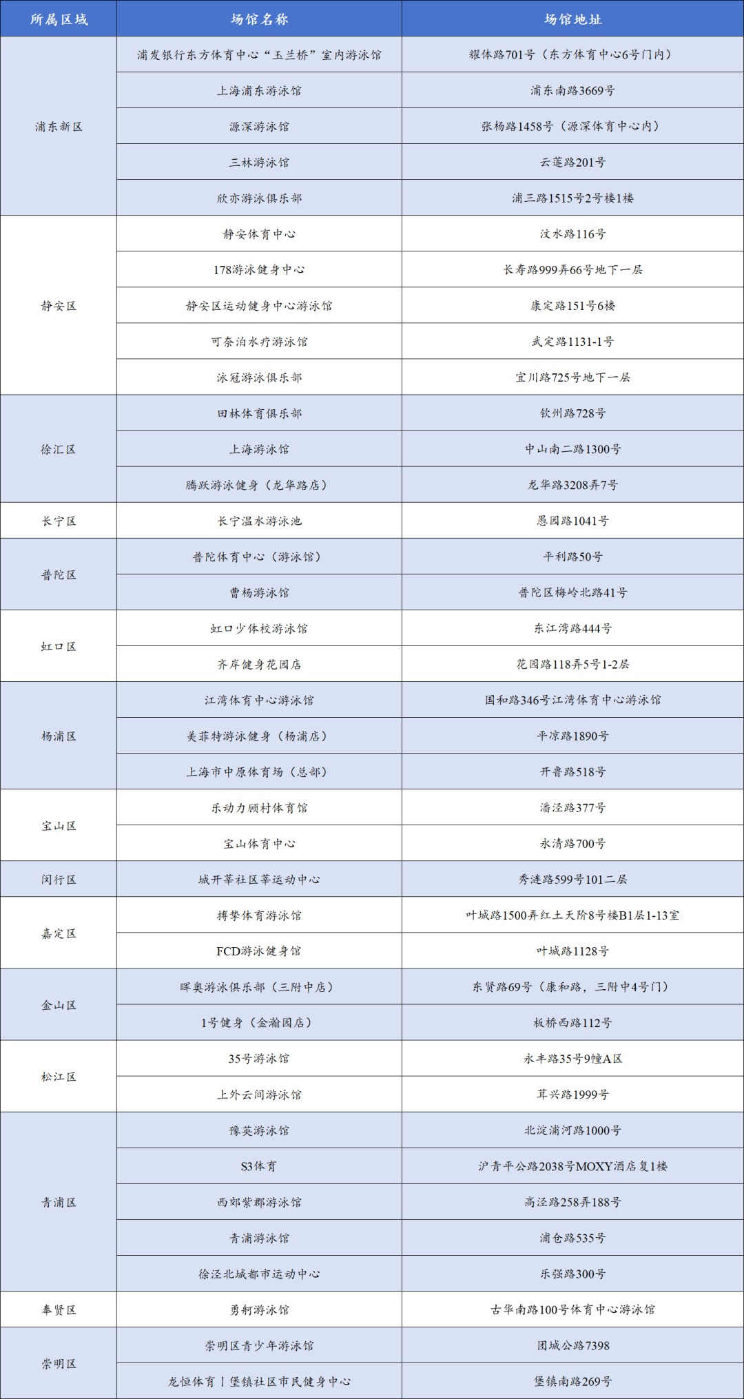 游泳专项券定点场馆名单