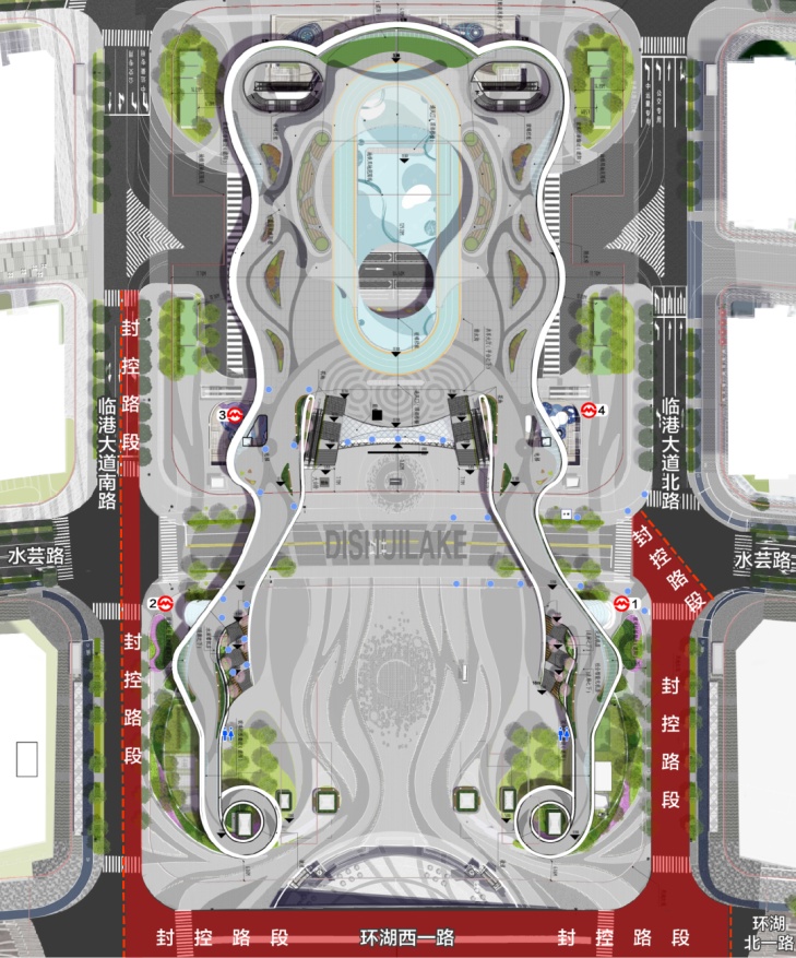 水芸路(临港大道南路--临港大道北路)、临港大道北路(水芸北路--环湖北一路)、环湖北一路(临港大道--乔柏路)内圈机动车道,禁止所有车辆通行,不允许车辆和行人横穿比赛线路。