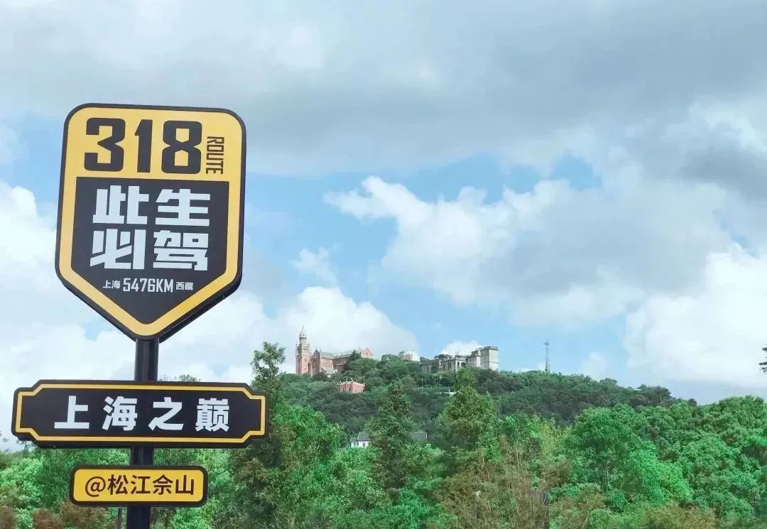 佘山是上海陆地最高峰,绿茵茵的草地、苍翠欲滴的树木,往前远眺,这满眼的绿色真是令人心旷神怡!顺着林荫小道,环绕骑行着,闲看大自然之美色。再与“上海之巅”318国道路标合个影,不虚此趟骑行之旅途哉!