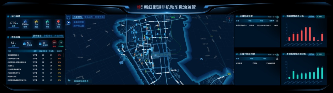 这些情况的好转都得益于今年新虹街道上线的“非机动车数治监管平台”以及线下非机动车管理机制的优化。
