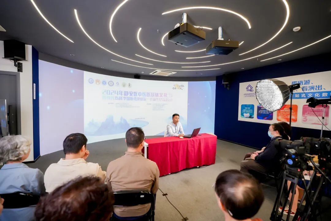 在石门二路街道社区文化活动中心的直播大厅里,2024年静安区中医医联体文化节专家线上直播活动也如火如荼举行。上海交通大学医学院附属瑞金医院伤科主任奚小冰、上海市育才初级中学副校长王薛、石门二路街道社区卫生服务中心中医全科主治医师姚远与线上、现场居民朋友展开互动。