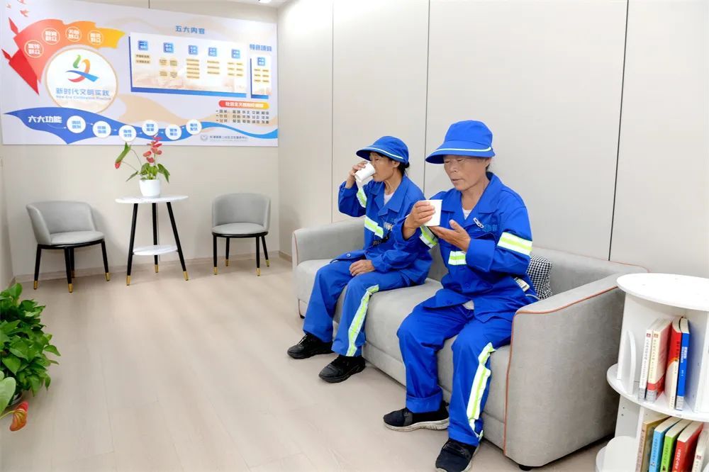 “这里不仅有空调、沙发、电视,口渴了还有水喝,非常方便!”午休时间,环卫工马阿姨和同事来到位于高平路尽头的驿站,对驿站内完善的服务设施赞不绝口。
