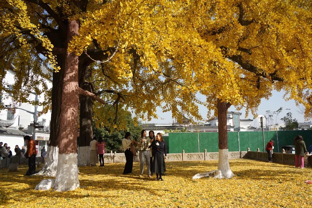 报国寺和朱家角广场的两棵银杏树都拥有着百年的身份,现在正是杏果结满树、硕果累累的大好景象。再过一段时间,银杏果掉落,叶子开始转黄,不久,满树金黄,满满的氛围感,随手一“咔”都是大片。