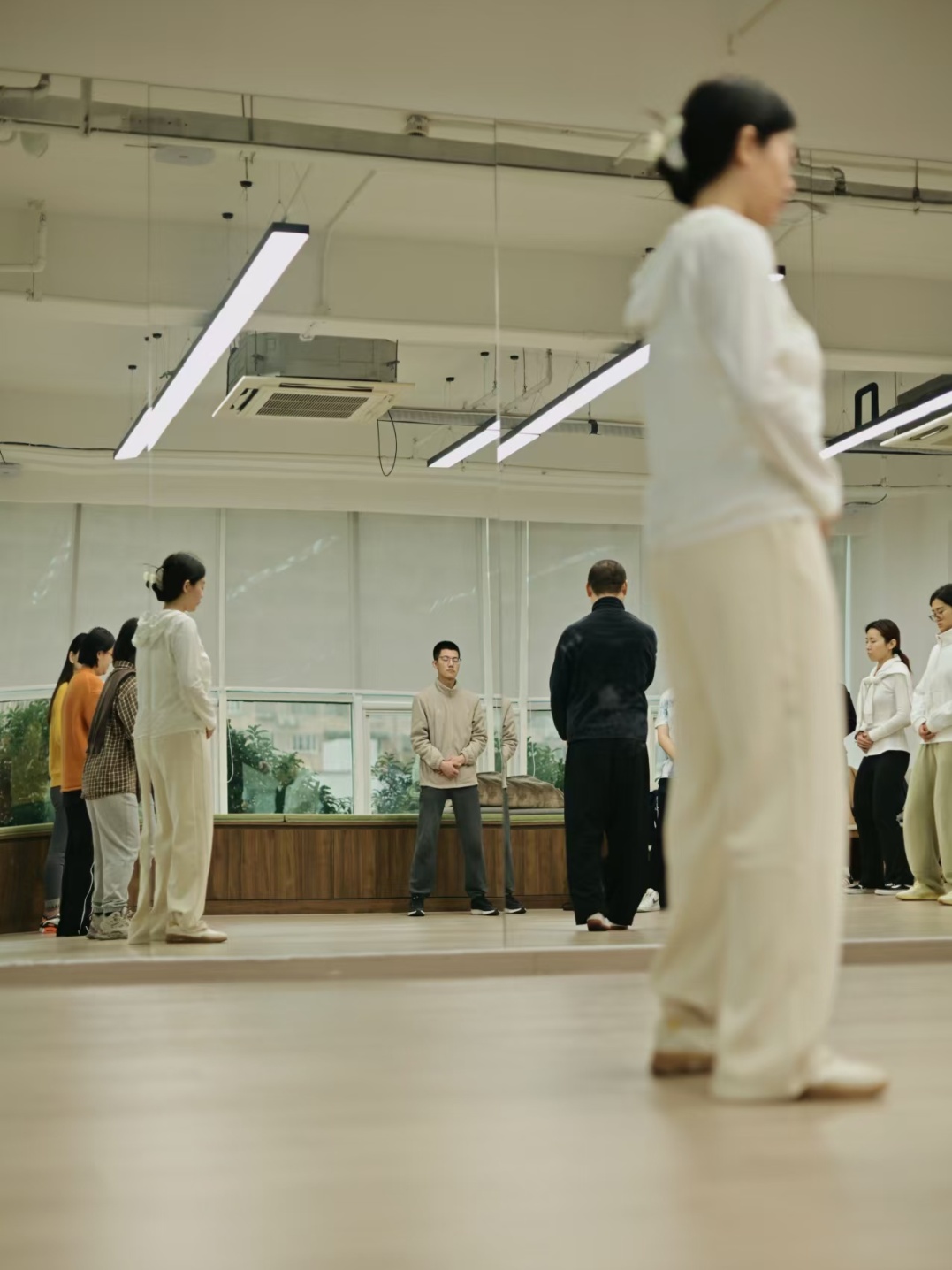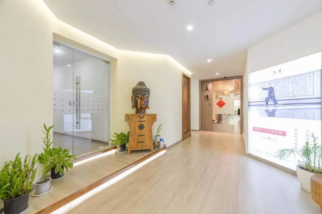 真阳太极拳馆内饰以暖黄为主,教室宽敞通透,光线清朗舒适,简易书画装饰营造出“静修”氛围,让学员容易进入“修行”的状态。