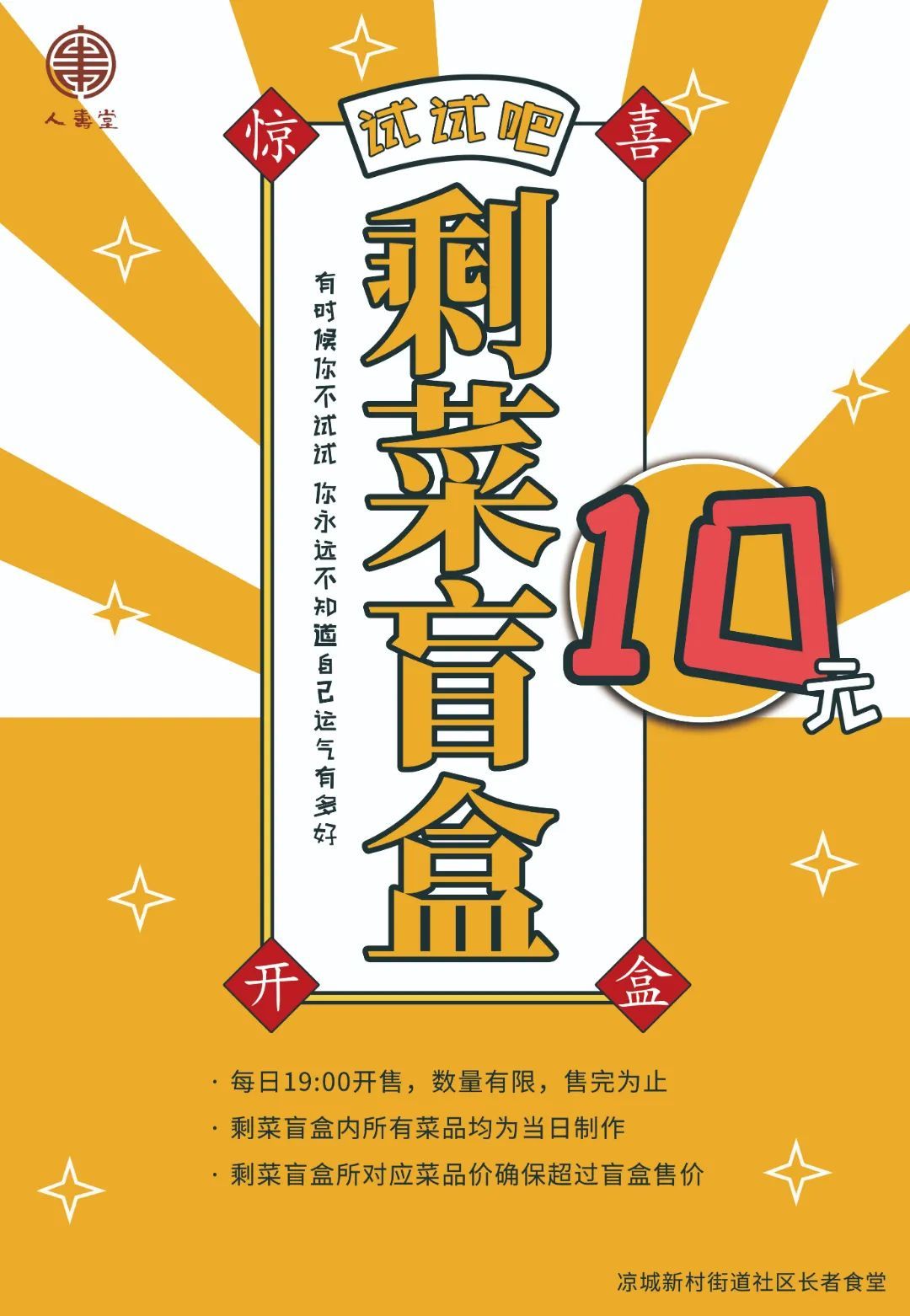 凉城社区长者食堂负责人朱经理介绍说,食堂开业以来,受到周边社区居民的欢迎,中午60个座位全部坐满,还要再翻一个台面,晚上人稍微少点,所以就推出了“剩菜盲盒”,一方面让利消费者,另一方面也不浪费食材。“别看叫剩菜盲盒,都是当晚现做出来的,绝对保证食材新鲜,前两天还有鲈鱼、剁椒鱼头等河鲜,一条鲈鱼平时要卖到18块钱,放在盲盒里,再配两个菜,总共才10块钱,多实惠呀!每晚10份左右,瞬间卖光!”朱经理说道。