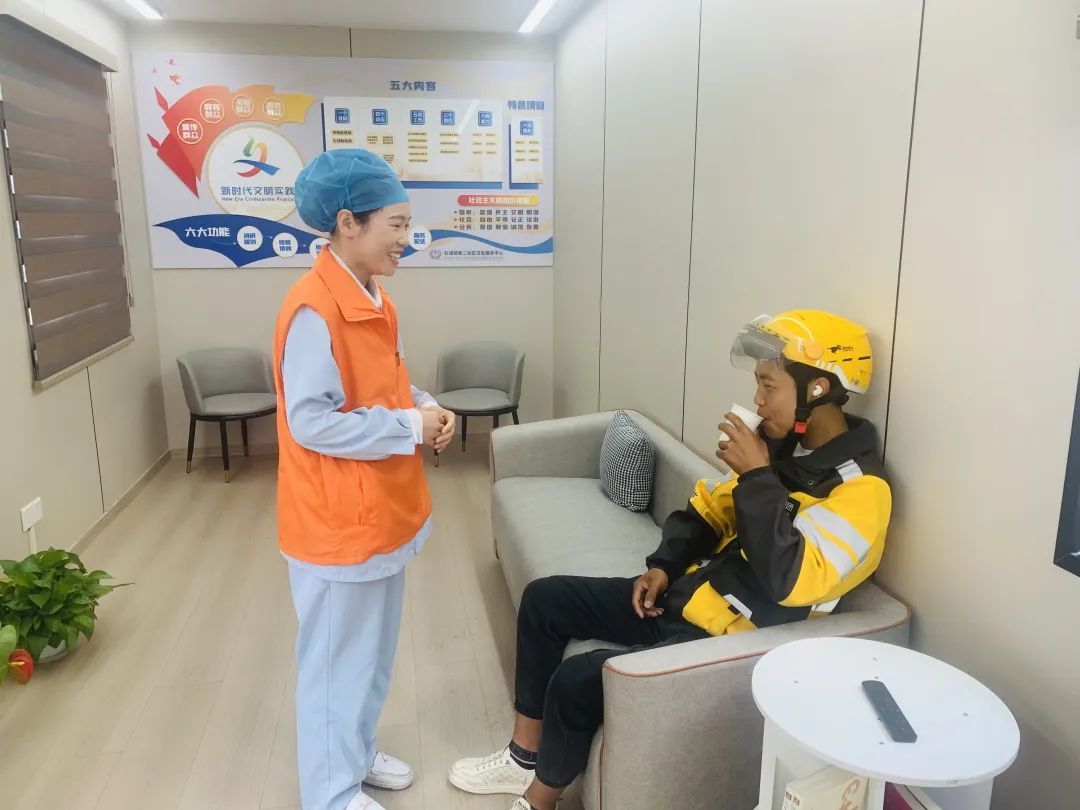 同时,中心发挥自身特色优势,在站内提供健康咨询、健康筛查、健康科普、健康沙龙、健康自测、健康体检等六大医疗服务,为户外工作人群搭建起想得起、找得到、用得着的“暖心屋檐”,不断提升他们的幸福感和归属感。