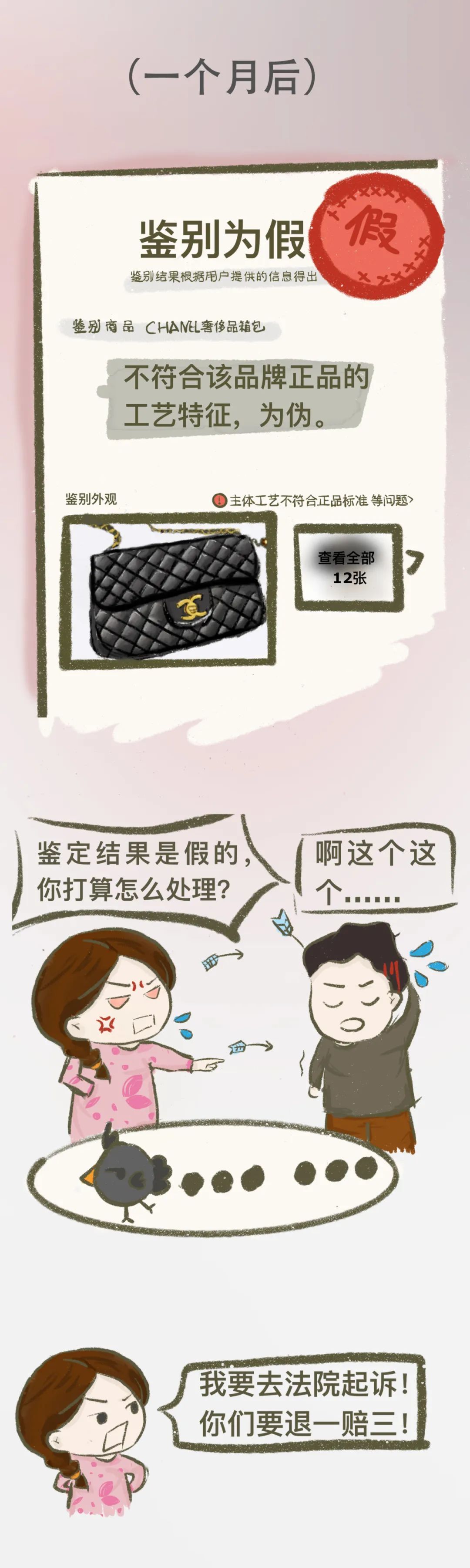 今天为大家带来上海市奉贤区人民法院的原创漫画《4.35万买的香奈儿竟是假货!什么情况?》。