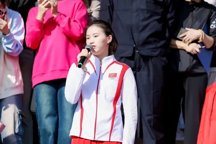 活动现场,陈芋汐带来微演讲《我的奥运之旅》,细述“金牌”背后浸透汗水、刻苦训练的备赛场景,以及赛场上全力以赴、奋勇争先的激动瞬间,她的讲述深深触动了每一位听众的心弦。在冠军微课堂中,陈芋汐向同学们介绍如何科学锻炼,并在现场带领同学们运动热身。